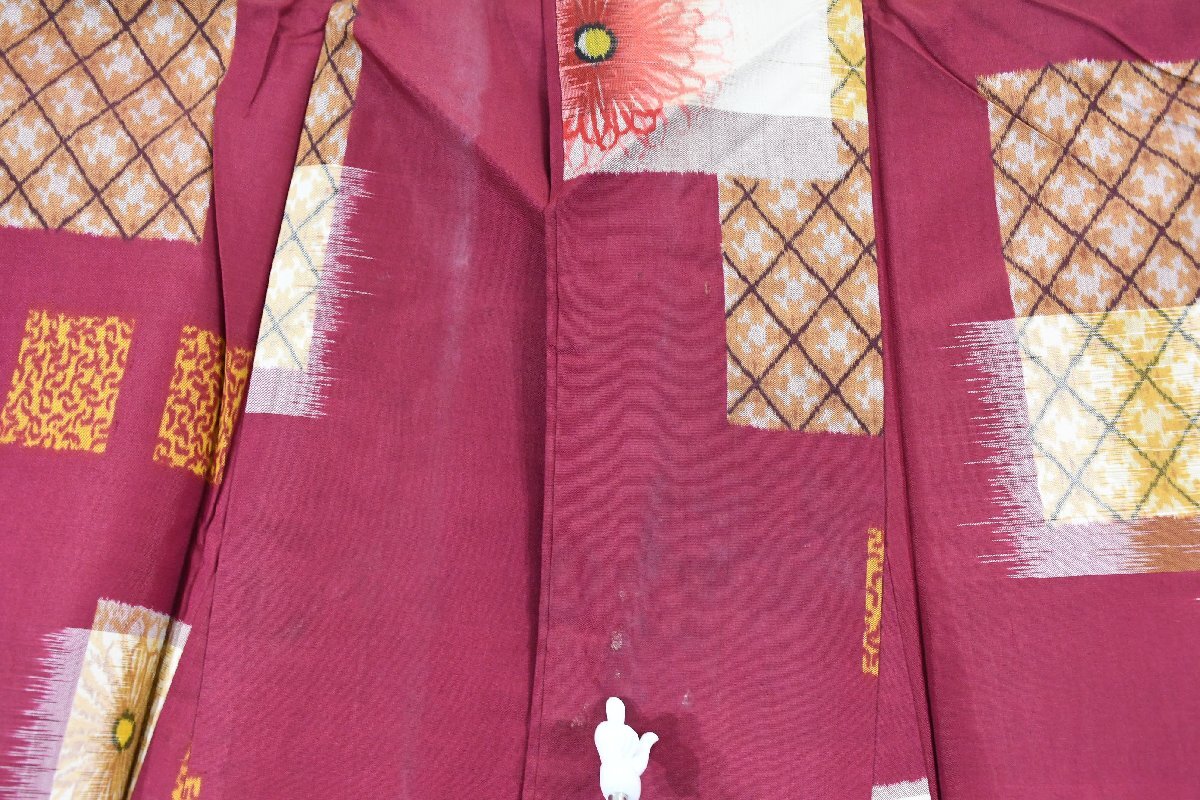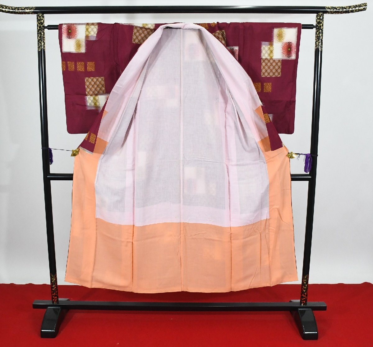 コメント | 衽、前身頃、後ろ、袖、衿、裏地等にシミ汚れがあります。新品ではありませんので、中古品という扱いです。少したたみジワがある場合がございます。ご了承の上、ご入札をよろしくお願いいたします。 |