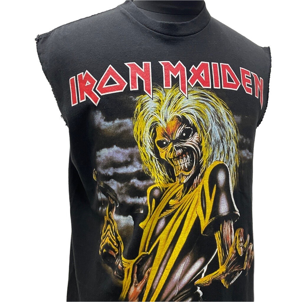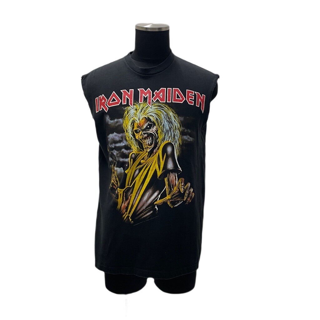 アメリカ古着になります。 アイアンメイデンのノースリーブTシャツです。 袖はカットオフされています。 1981年発売のアルバム、キラーズのジャケットデザイン。 コピーライトは2009年です。 洗濯済みになります。お探しの方におすすめです。 | |||