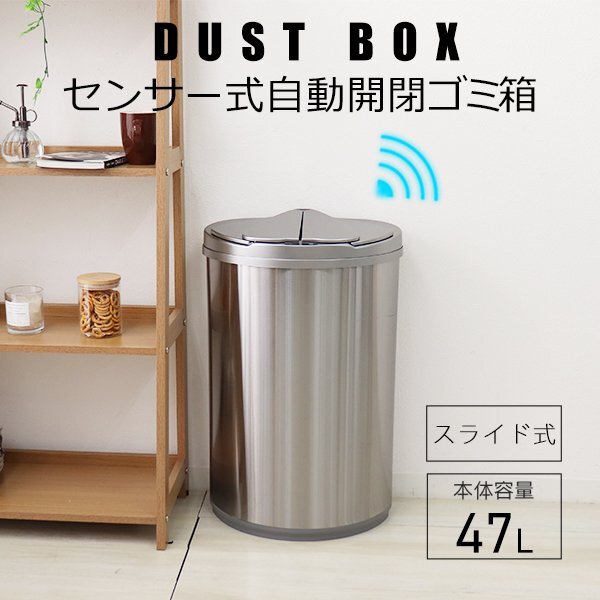 センサー式 全自動自動開閉ゴミ箱 大容量47L 両開き 非接触 フタ付き ダストボックス 電池式 スチール リビング キッチン 家庭用