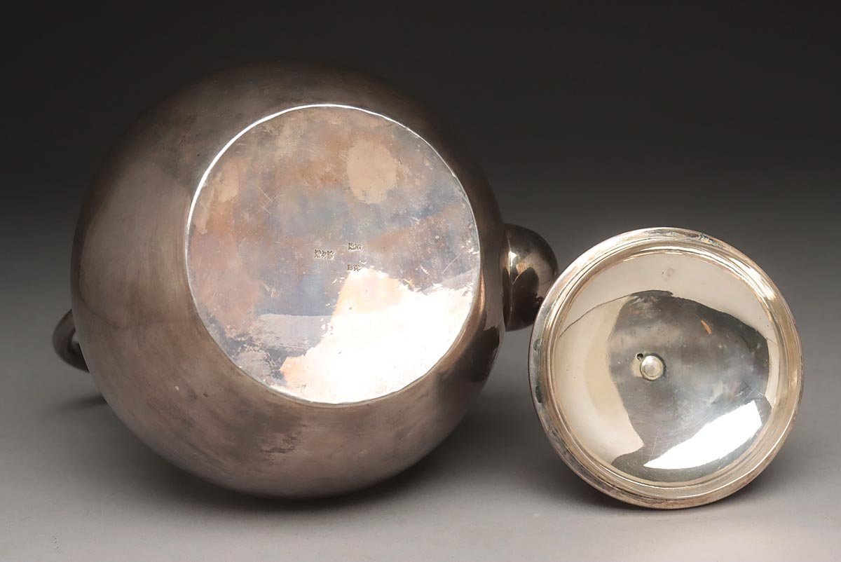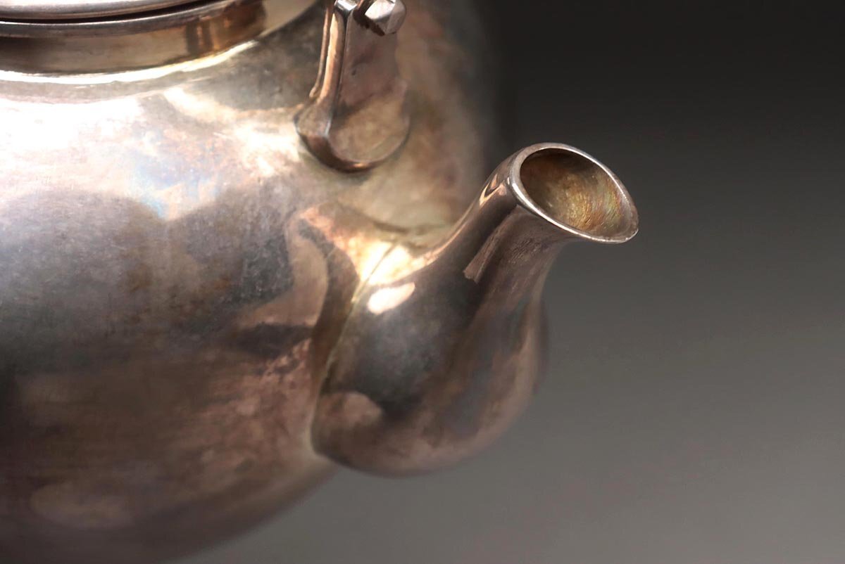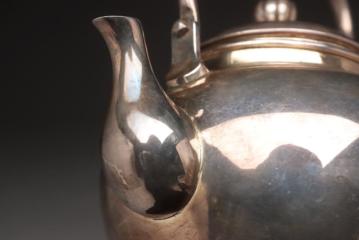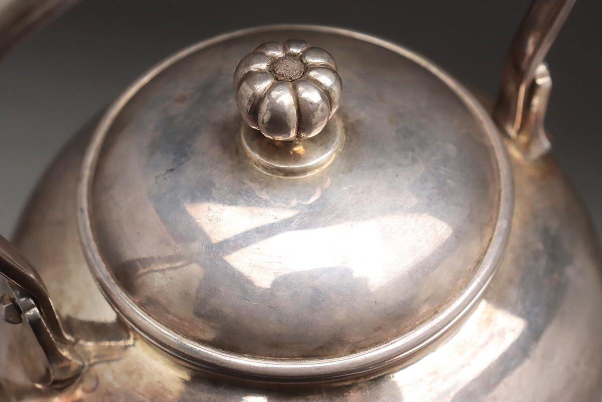 | ◆ 時代金工【秋田 渋谷製】純銀 菊摘 銀急須 高15.3cm 重298g 純銀刻 水漏無 木箱附・純銀瓶・煎茶 湯沸 茶具 煎茶道具 ◆