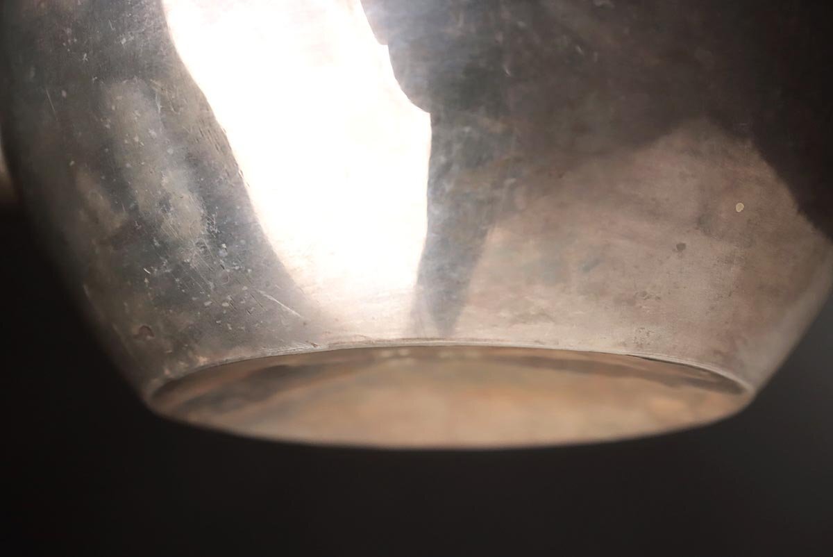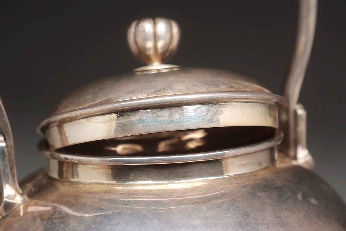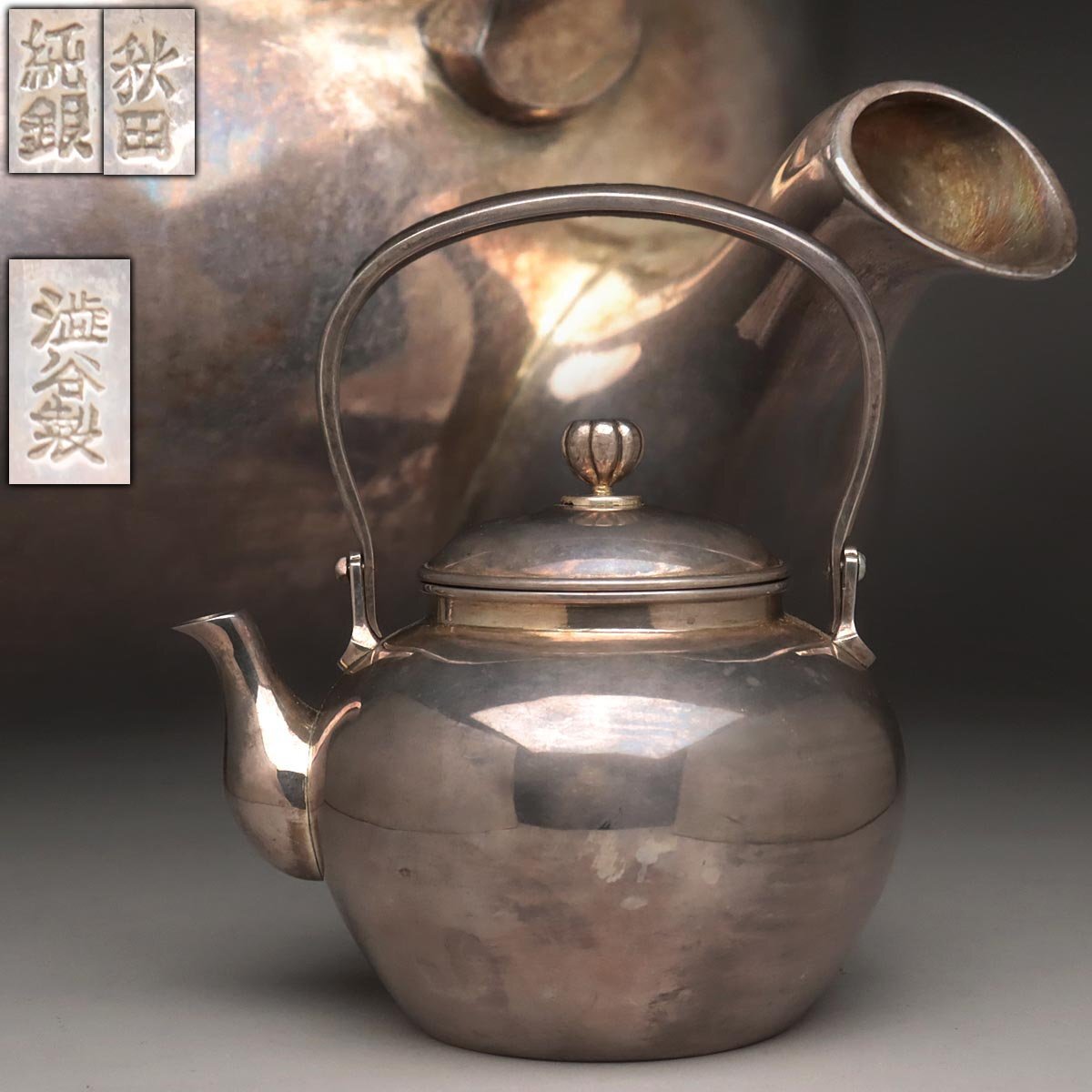 | ◆ 時代金工【秋田 渋谷製】純銀 菊摘 銀急須 高15.3cm 重298g 純銀刻 水漏無 木箱附・純銀瓶・煎茶 湯沸 茶具 煎茶道具 ◆