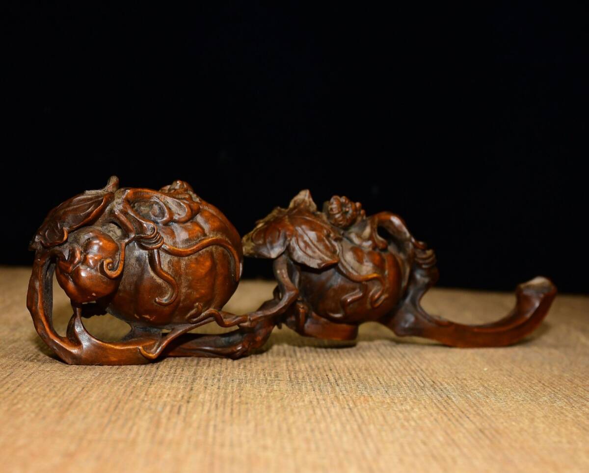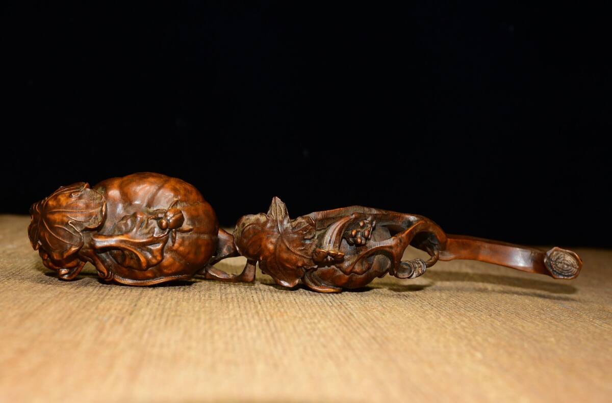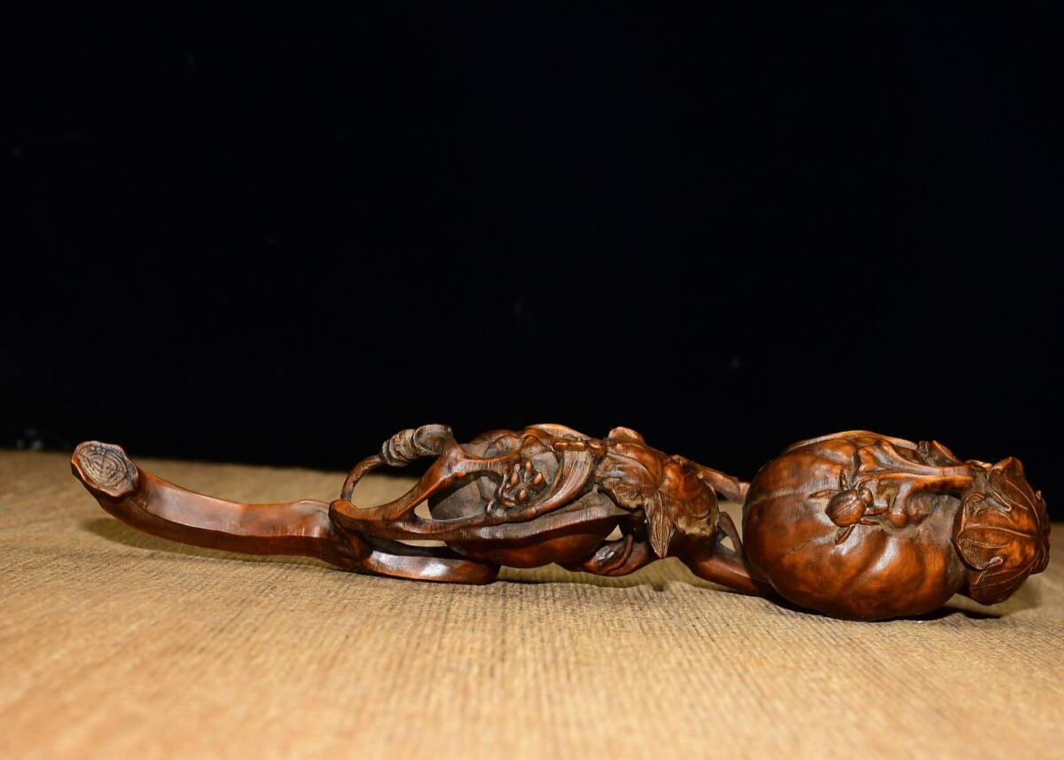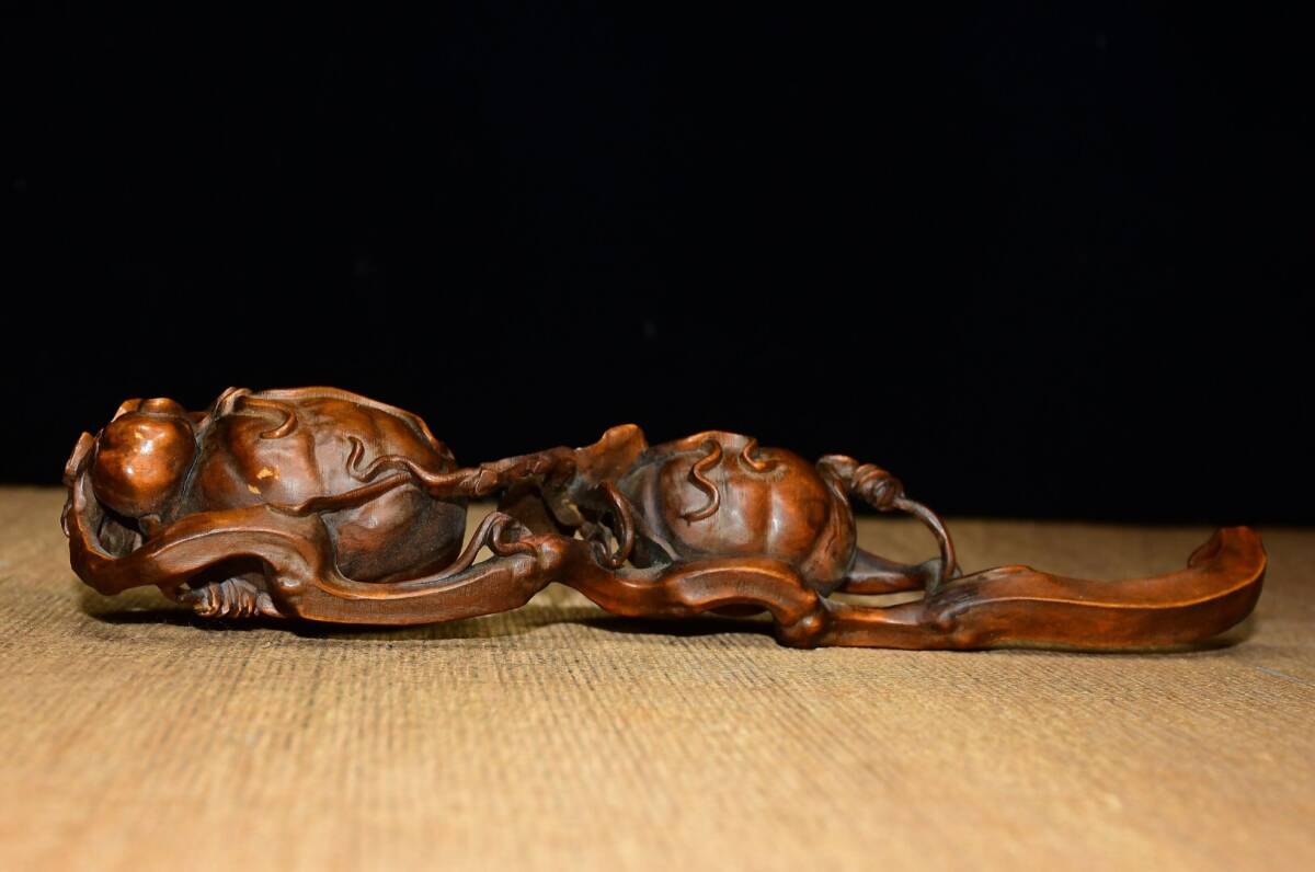 | 【蔵友館蔵品・黄楊木製・細密彫・呱呱來財如意・置物・賞物】・古董品・中国古玩・時代物・希少珍品・中国時代美術 |