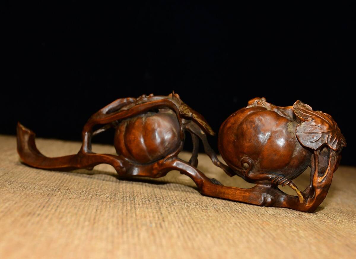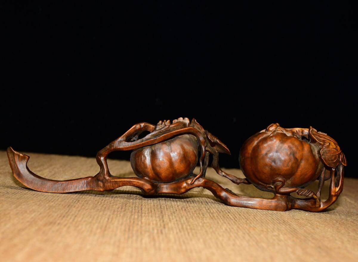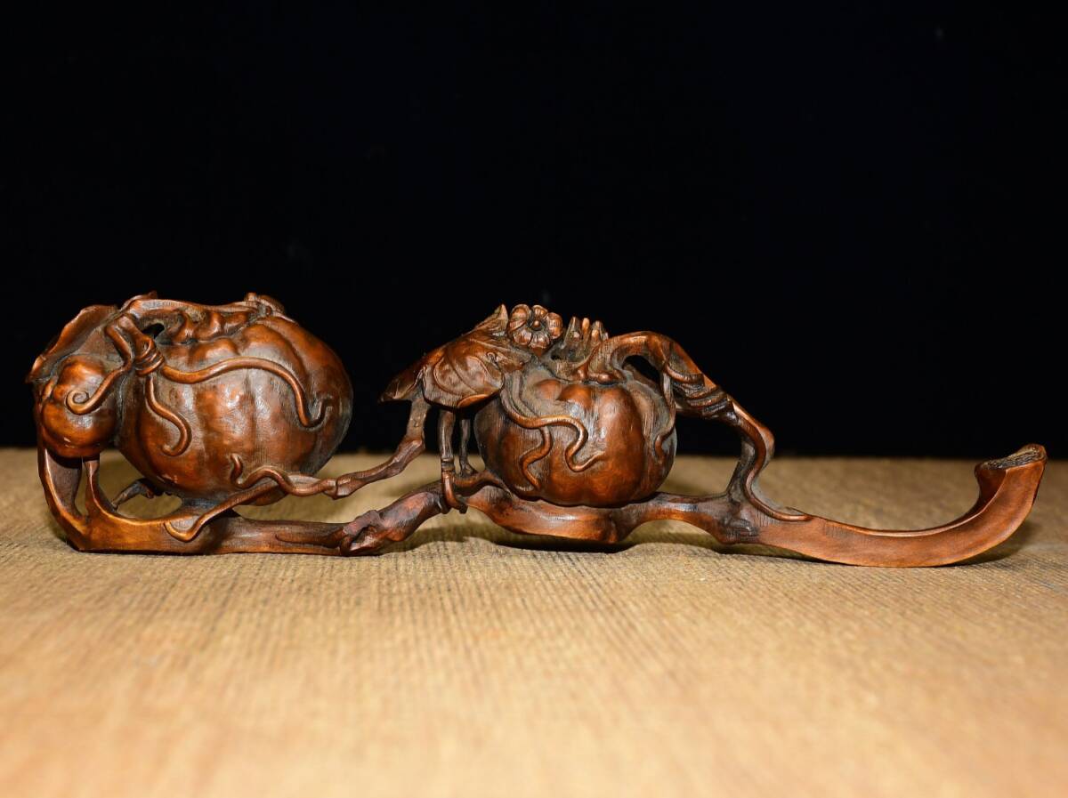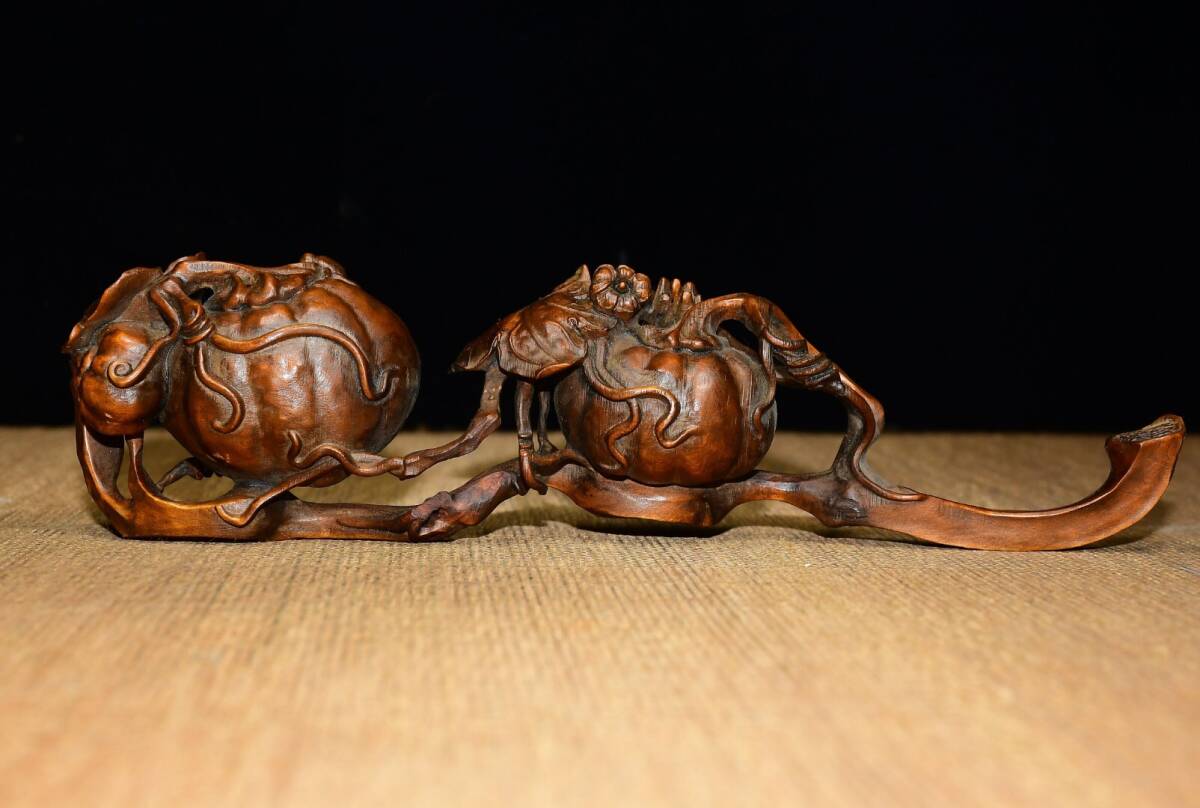 | 【蔵友館蔵品・黄楊木製・細密彫・呱呱來財如意・置物・賞物】・古董品・中国古玩・時代物・希少珍品・中国時代美術 |