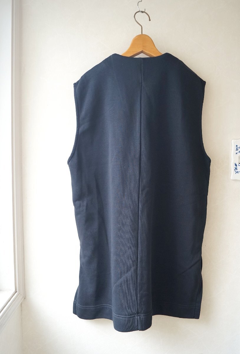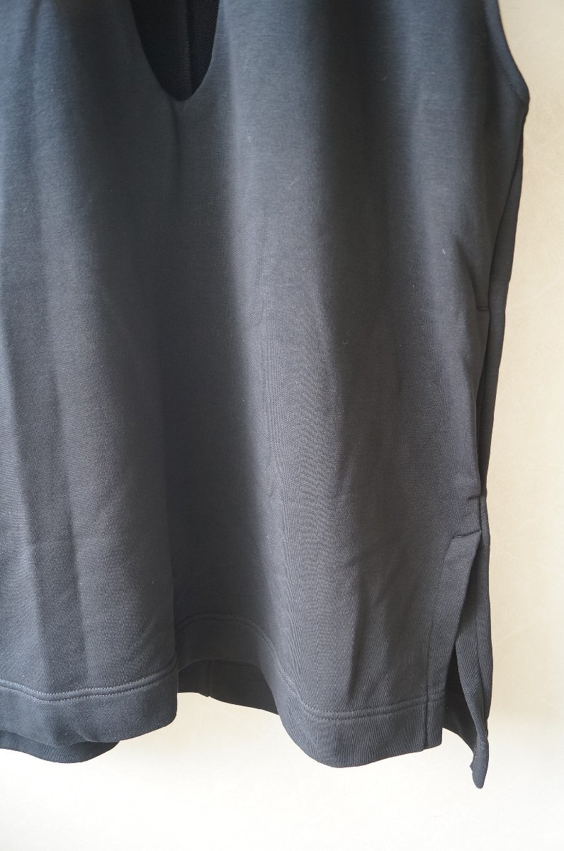 深めのUネックにサイドスリットの長め丈が特徴的なベストです。
