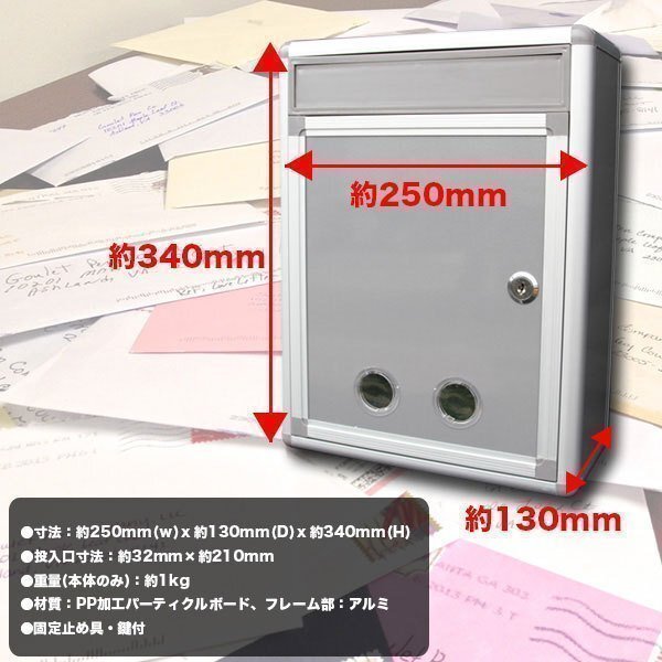 レターボックス 鍵付き アルミ枠 郵便受け 投書箱 ポスト ガーデン メールボックス 玄関 郵便受け 取付 簡易 シンプル
