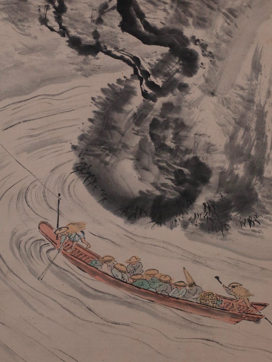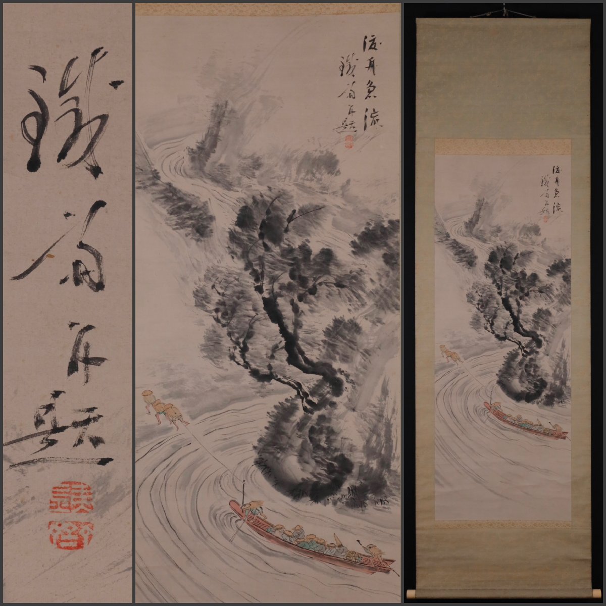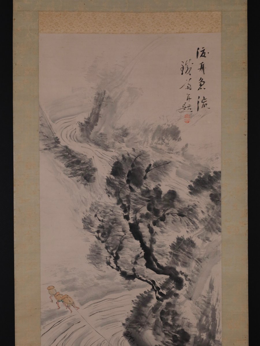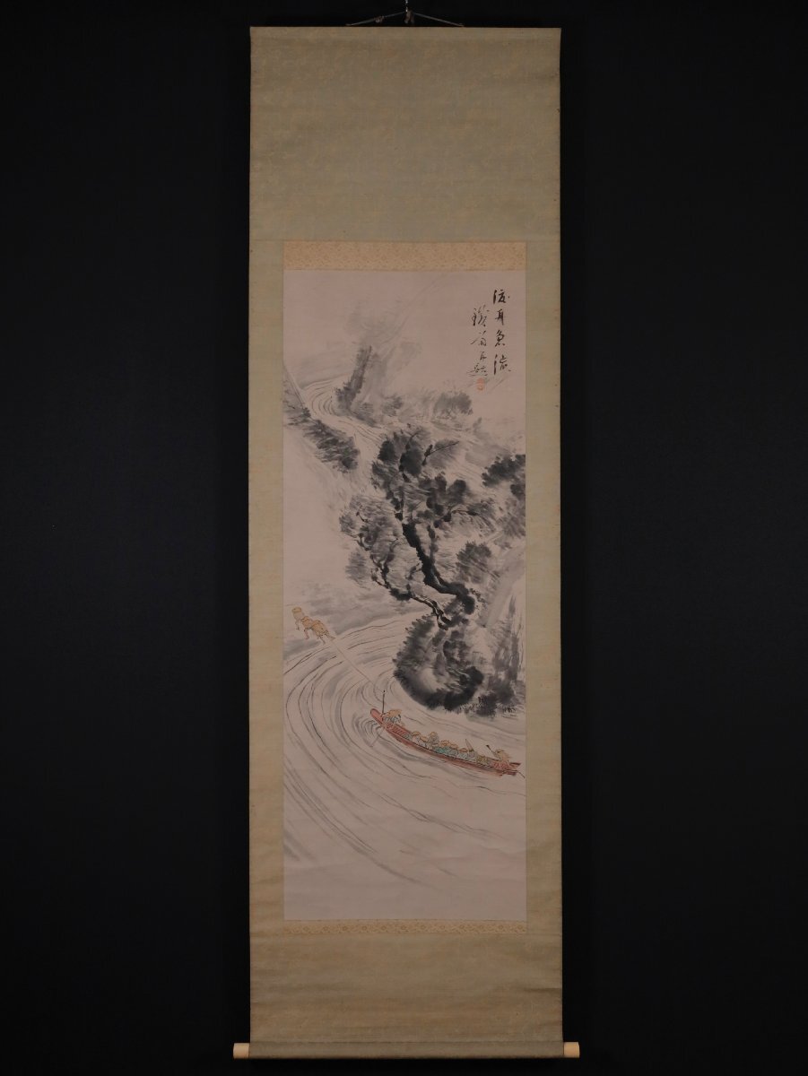 【模写】吉】12858 富岡鉄斎 山水図 大田垣蓮月の学僕 南画家 中国画 書家 掛軸 掛け軸 骨董品