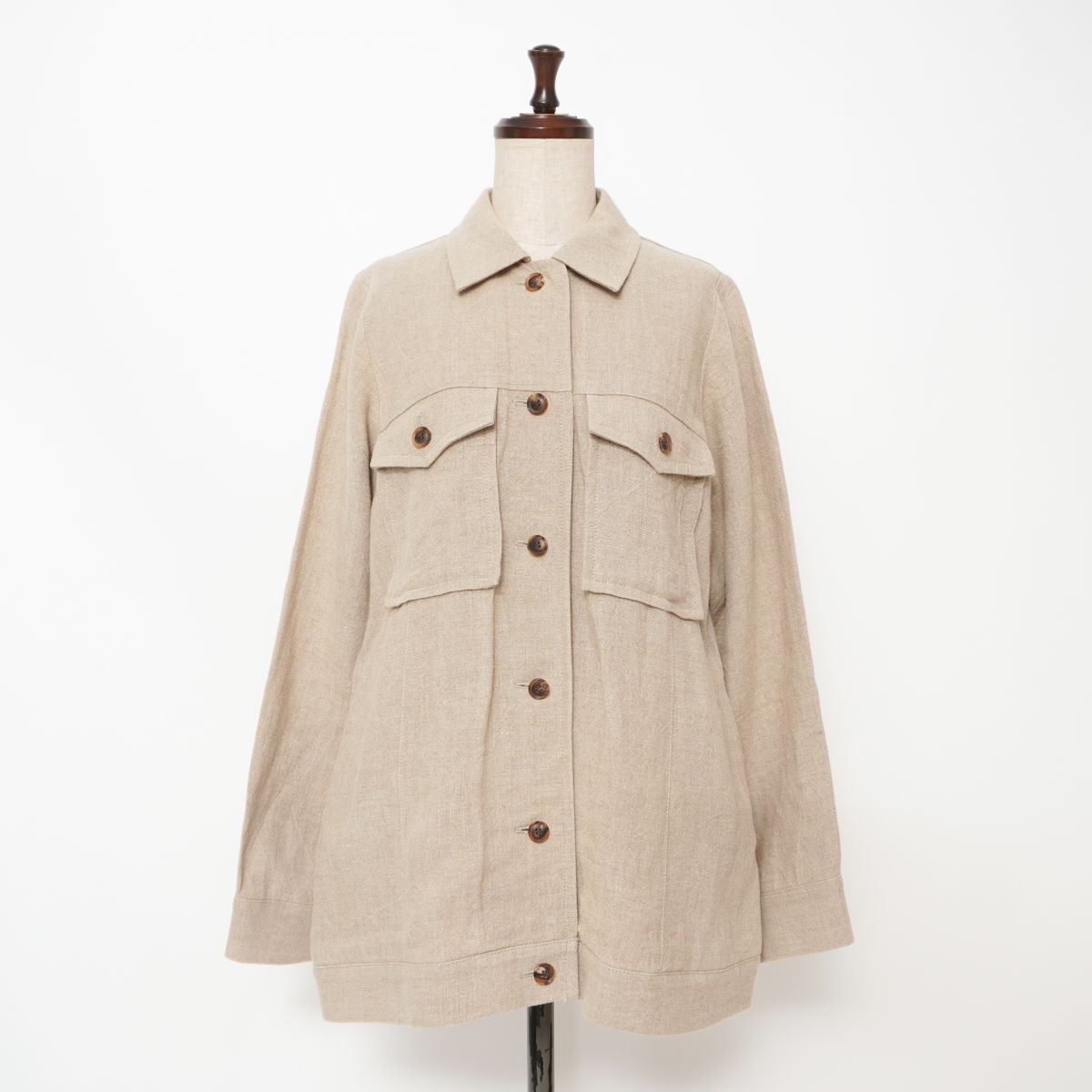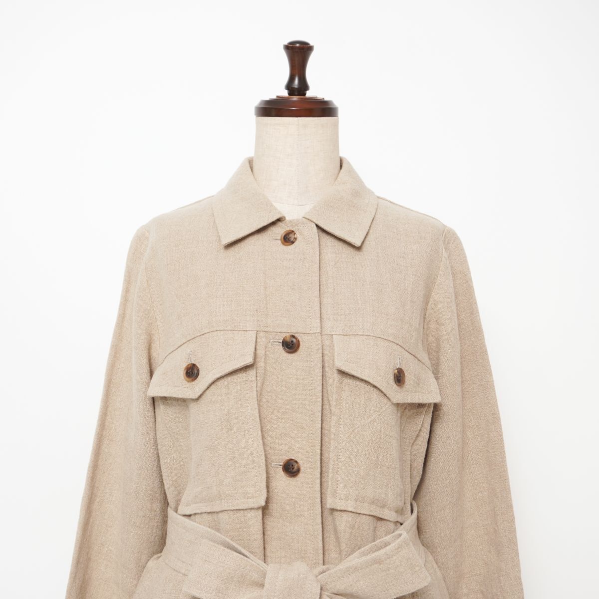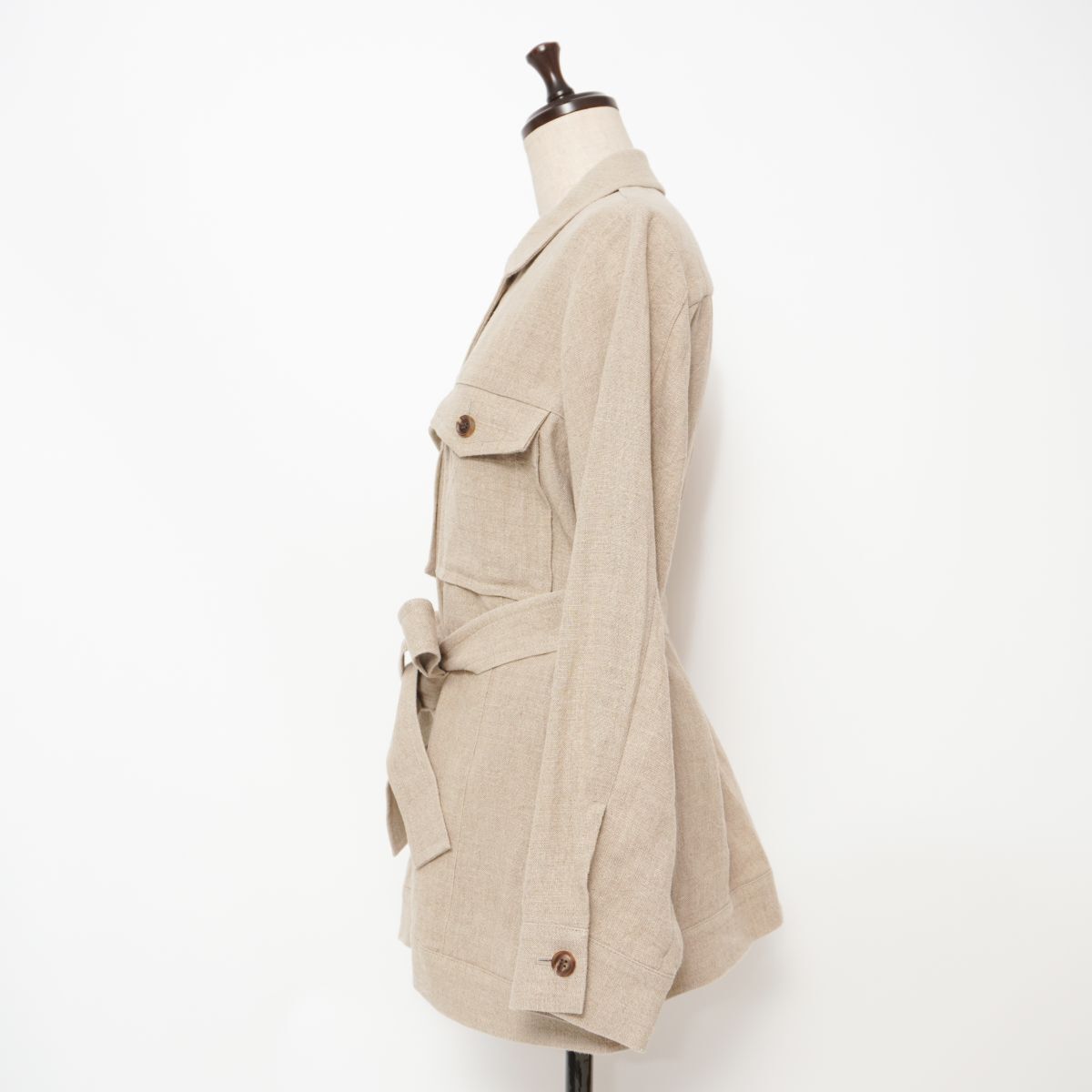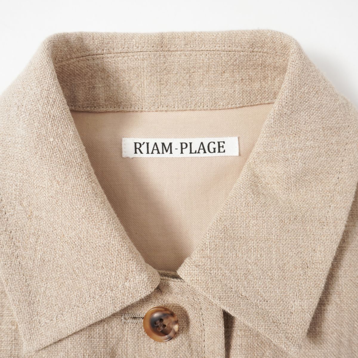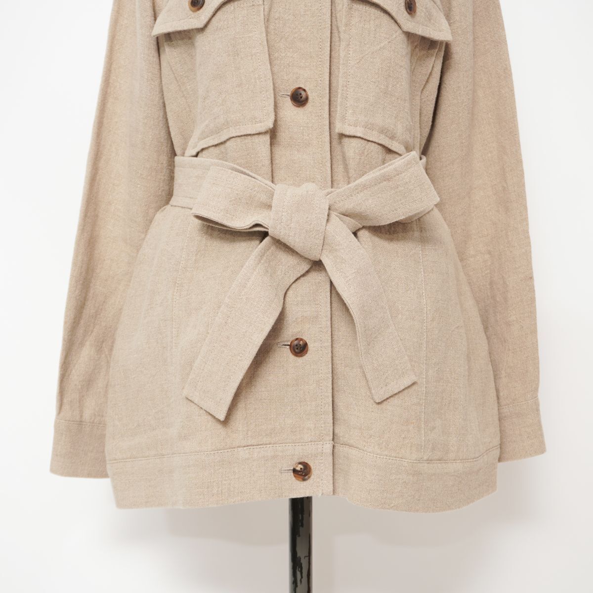 美品 R'IAM リアム PLAGE プラージュ 麻ミリタリージャケット リネン 19SS ウエストマーク ベルト レディース ベージュ サイズ38*GD412