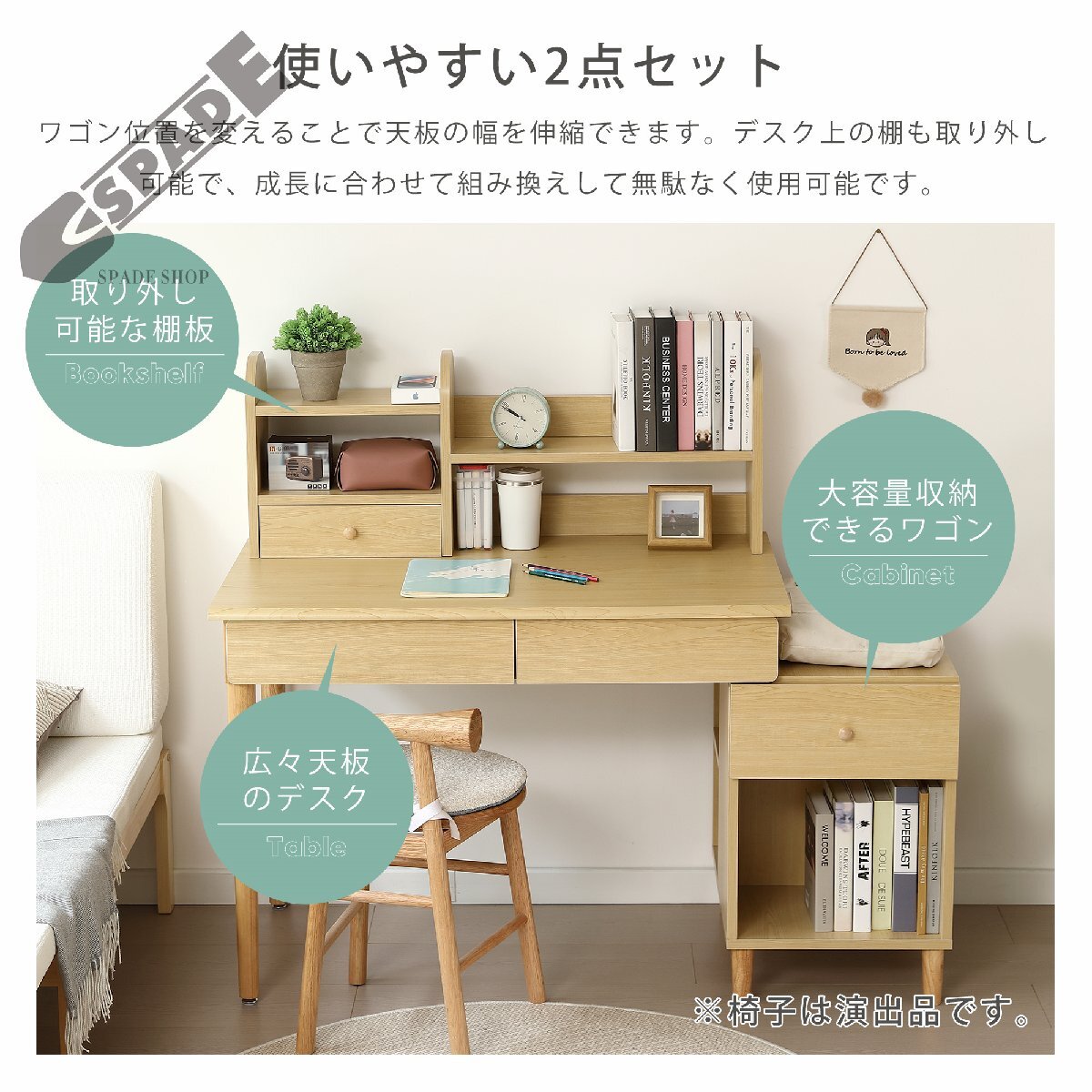 • 【伸縮でき-棚も取り外し可能】ワゴン位置を変えることで天板の幅を伸縮できます。デスク上の棚も取り外し可能で、成長に合わせて組み換えして無駄なく使用可能です。