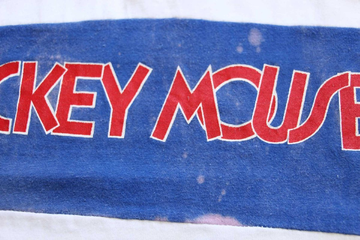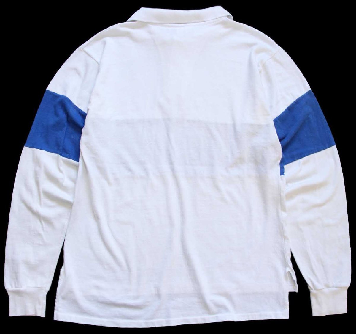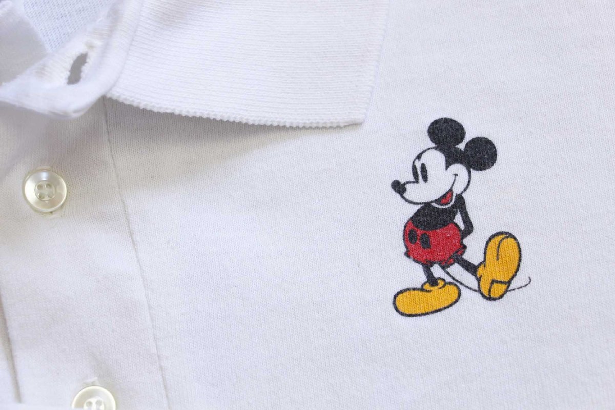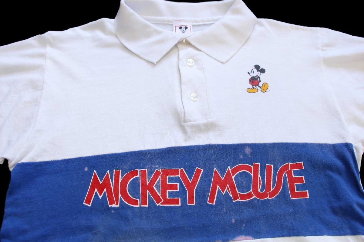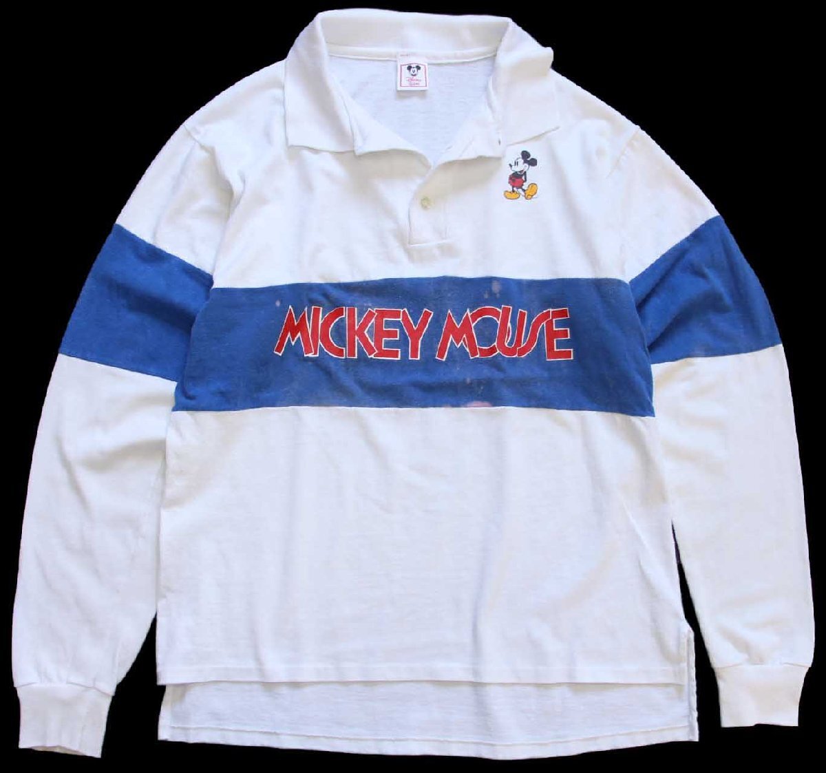 ★90s USA製 Disneyディズニー MICKEY MOUSEミッキー マウス 長袖ポロシャツ 白×青★ビンテージ オールド キャラ ライン ユニセックス