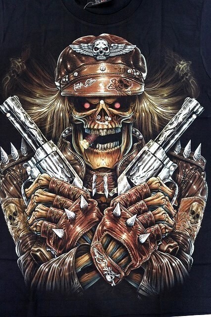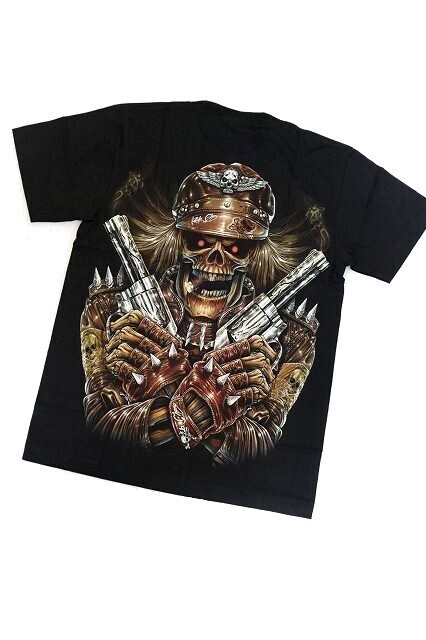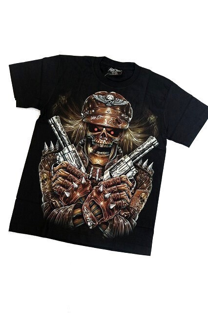 【新品】ドクロ マグナム 3D Tシャツ 半袖【S】黒◆骸骨 SKULL GUN 銃 ストリート DJ ヒップホップ ロック ヘビメタ 男性 女性