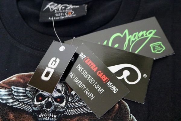 デザイン内に金属が使用されているとてもおしゃれで珍しいTシャツです。