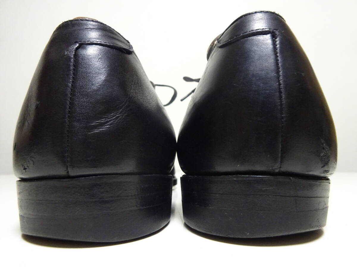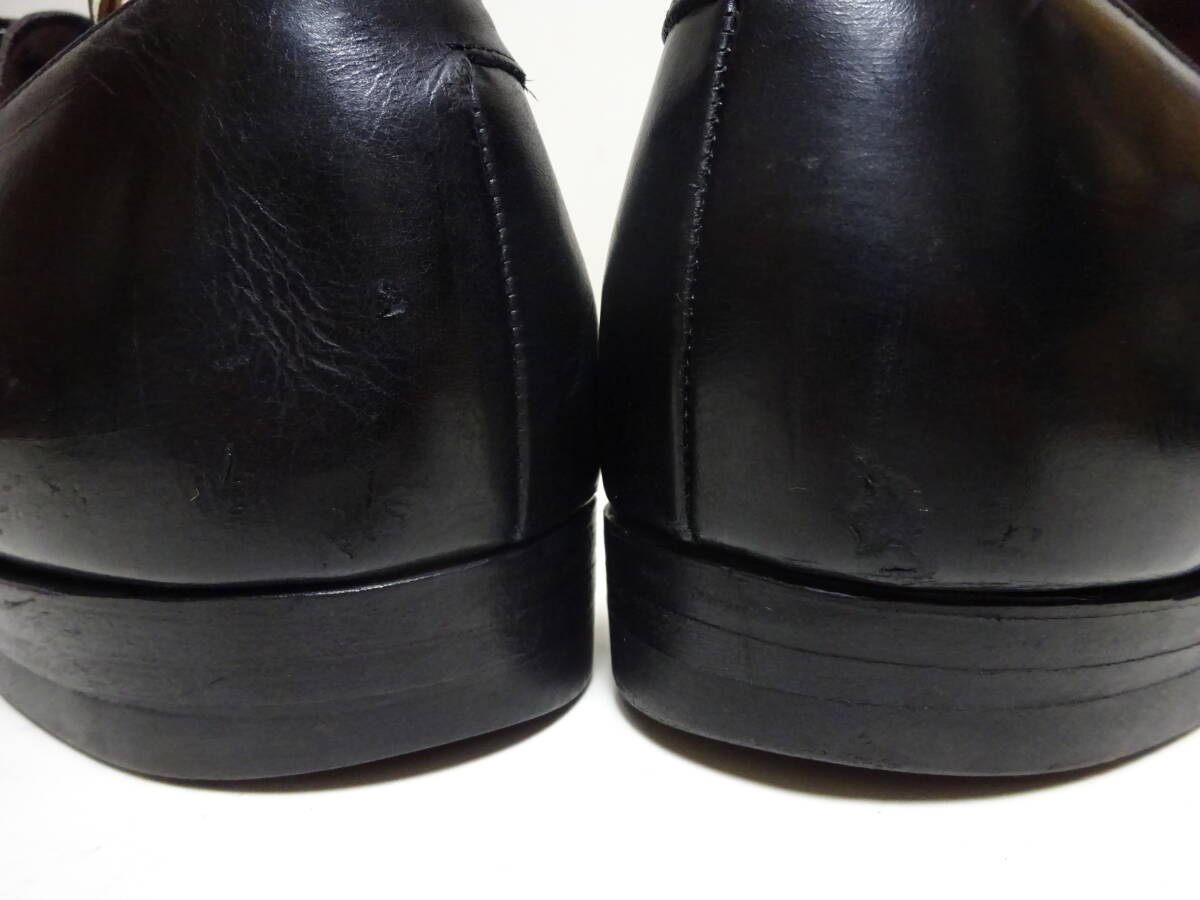 【コンディション】アッパー、両足履きシワ、両足トゥ先細かな小キズ、両足ヒールカップキズが見受けられます。レザーは程よい艶はまだ残るものになります。インソール、両足ネームは汚れが見えなくなっている状態です。ダメージは見受けられません。サイドの表示はまだ見えるものです。ソール、おそらくオールソールされております。減り少なくかなり残るものになります。ヒール、少しの減りは見受けられますが、まだまだお履きしていただけます。