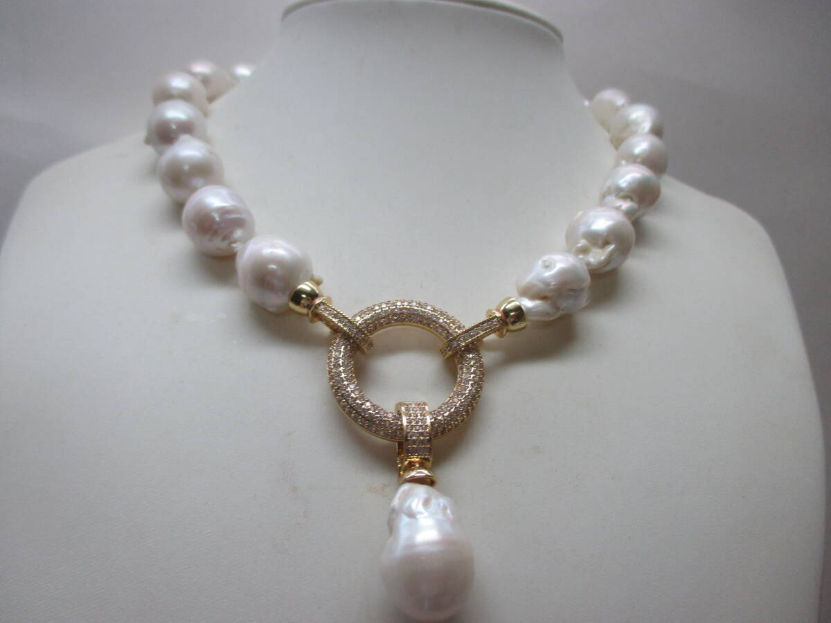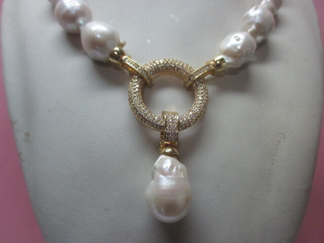 ★2通り可1連シンプルもOK新品南洋大ぶりバロックケシコロリンと可愛いパールネックレス♪♪CZペンダント付き重宝♪