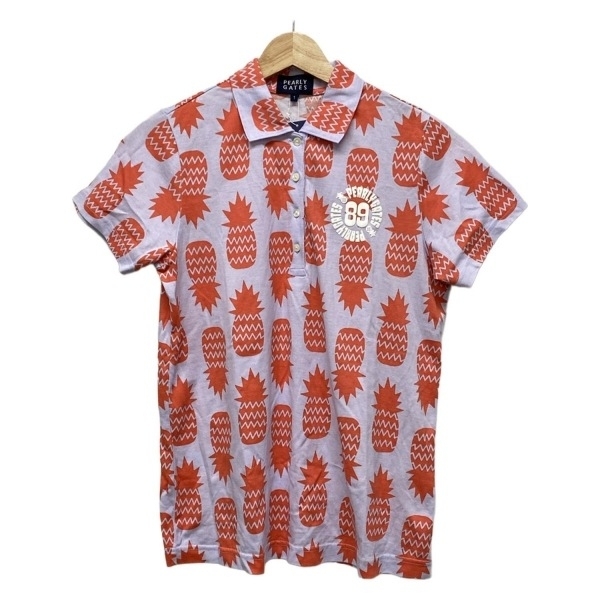 パーリーゲイツ PEARLY GATES 半袖ポロシャツ サイズ1 S - ライトパープル×オレンジ×白 レディース パイナップル柄 美品 トップス