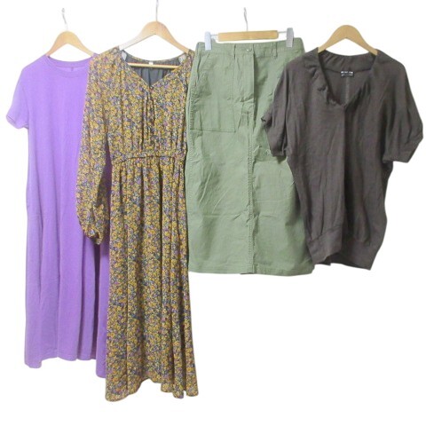 ファイナルホーム 他 衣類 4点セット おまとめ カットソー ロングスカート ワンピース 半袖 長袖 無地 花柄 XS~L相当 マルチカラー X