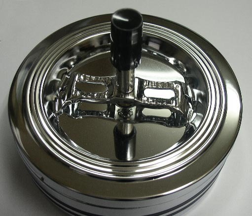 新品正規品 老舗 ペンギン社 クローム黒ラインII 回転灰皿大 スチール製