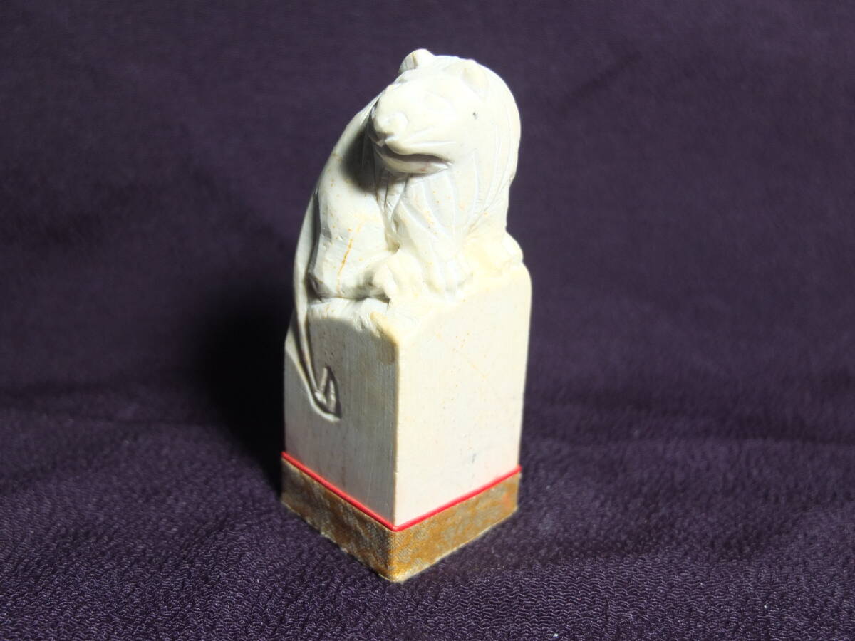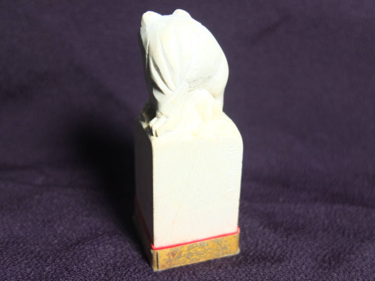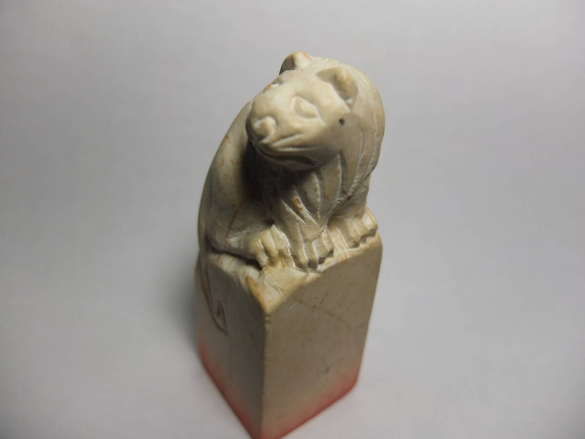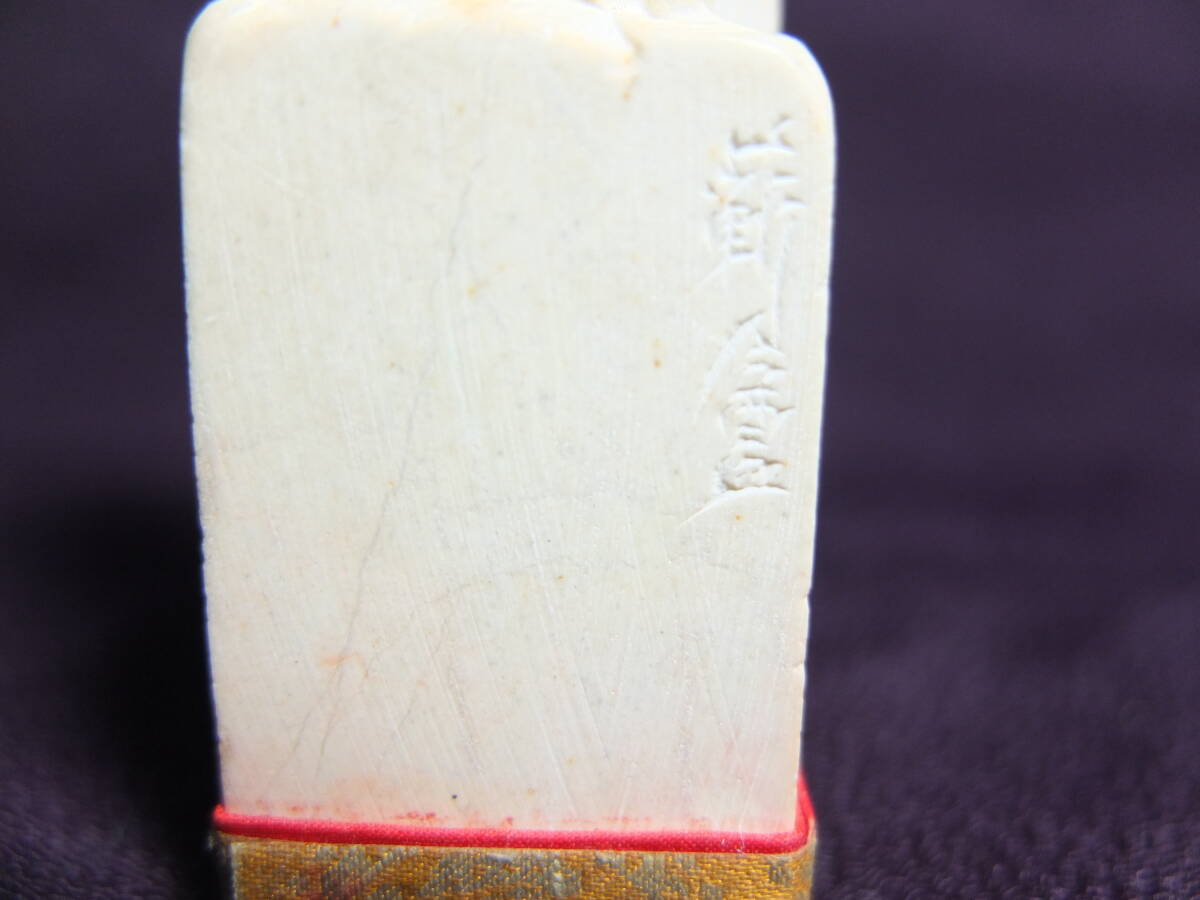 【古玩】獅子紐袴付き 寿山材印 印面30mmx30mm 作銘有り