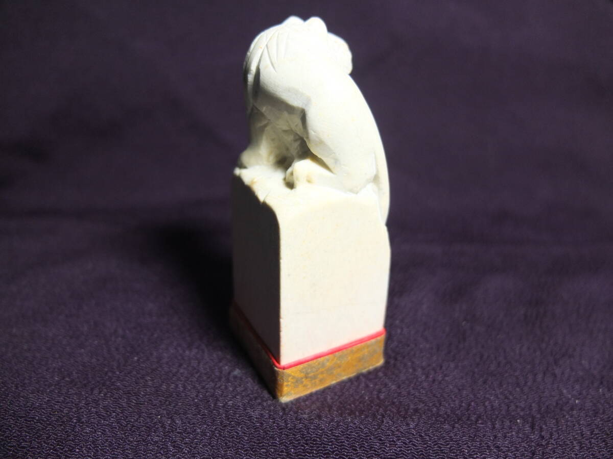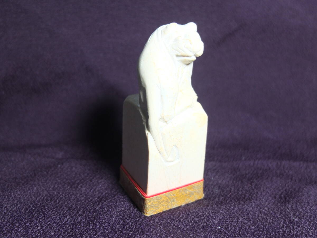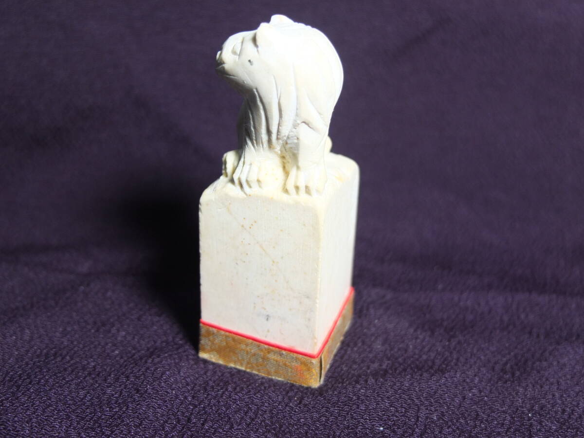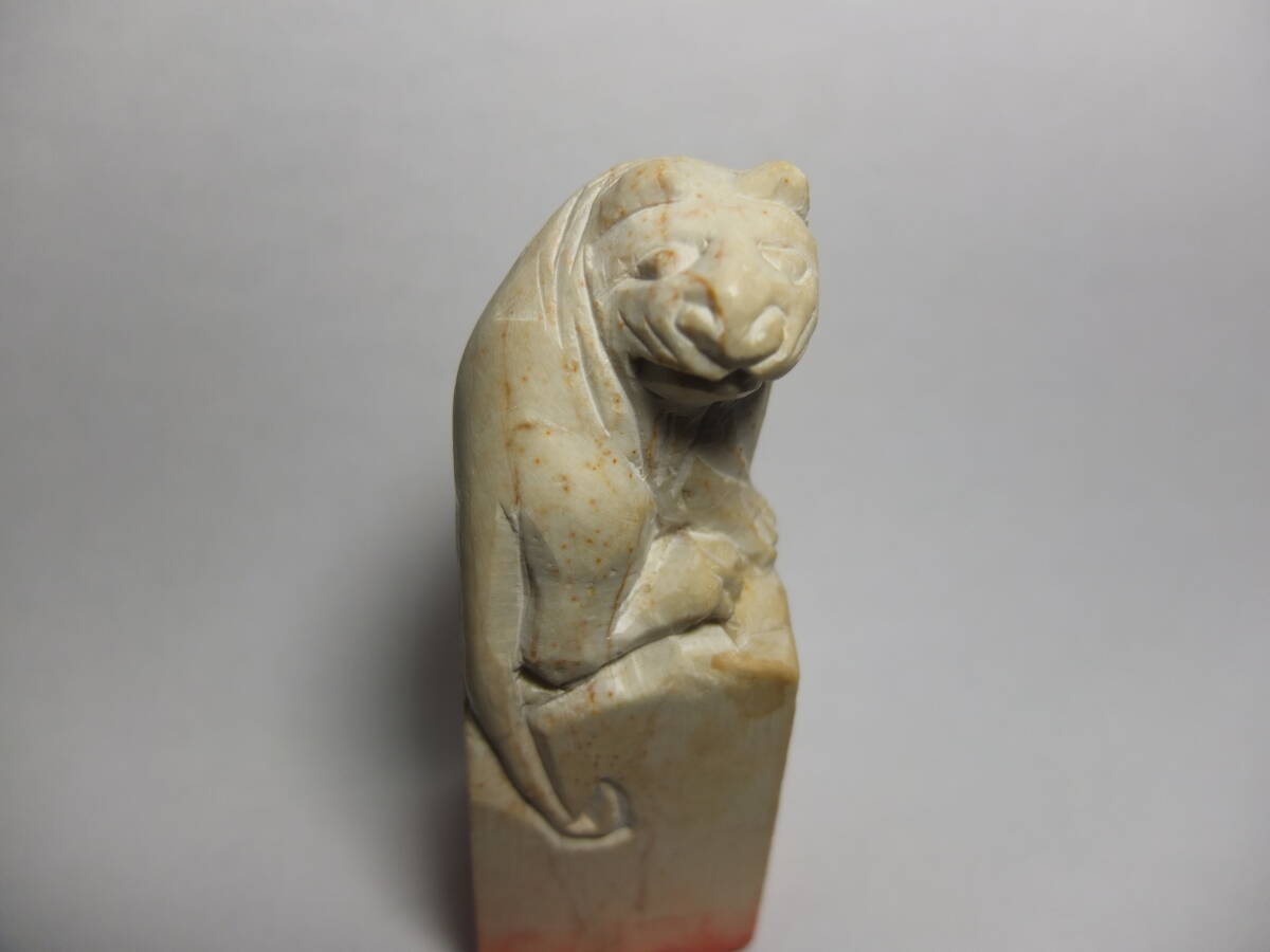【古玩】獅子紐袴付き 寿山材印 印面30mmx30mm 作銘有り