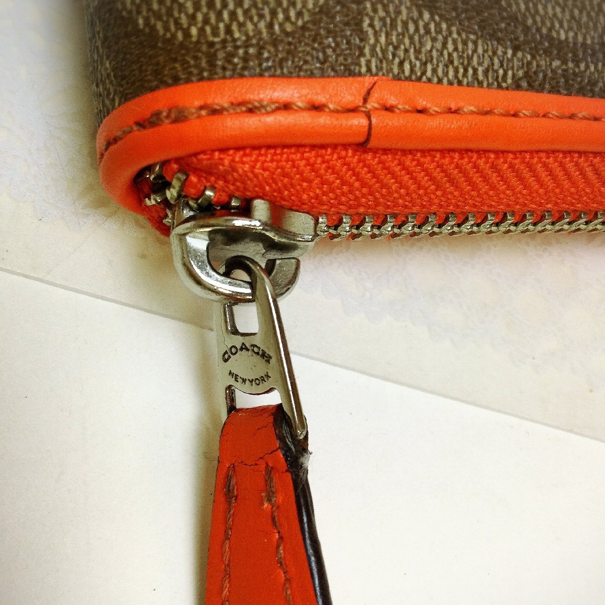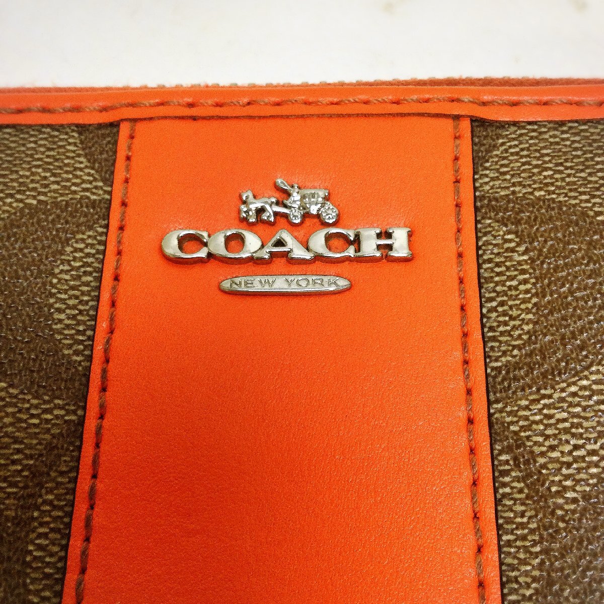 | COACH コーチ 長財布 ウォレット レディース 大容量 橙 オレンジ シグネチャー ラウンドファスナー レザー |