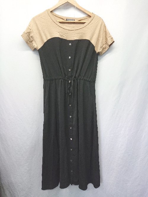 ◇ ⊂ Milk tea マタニティ 半袖 膝下丈 ワンピース サイズM ブラック ベージュ系 レディース E