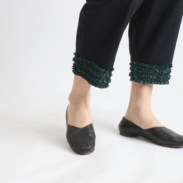 (裾フリルの部分はギマ擬麻コットンを使用しています。)