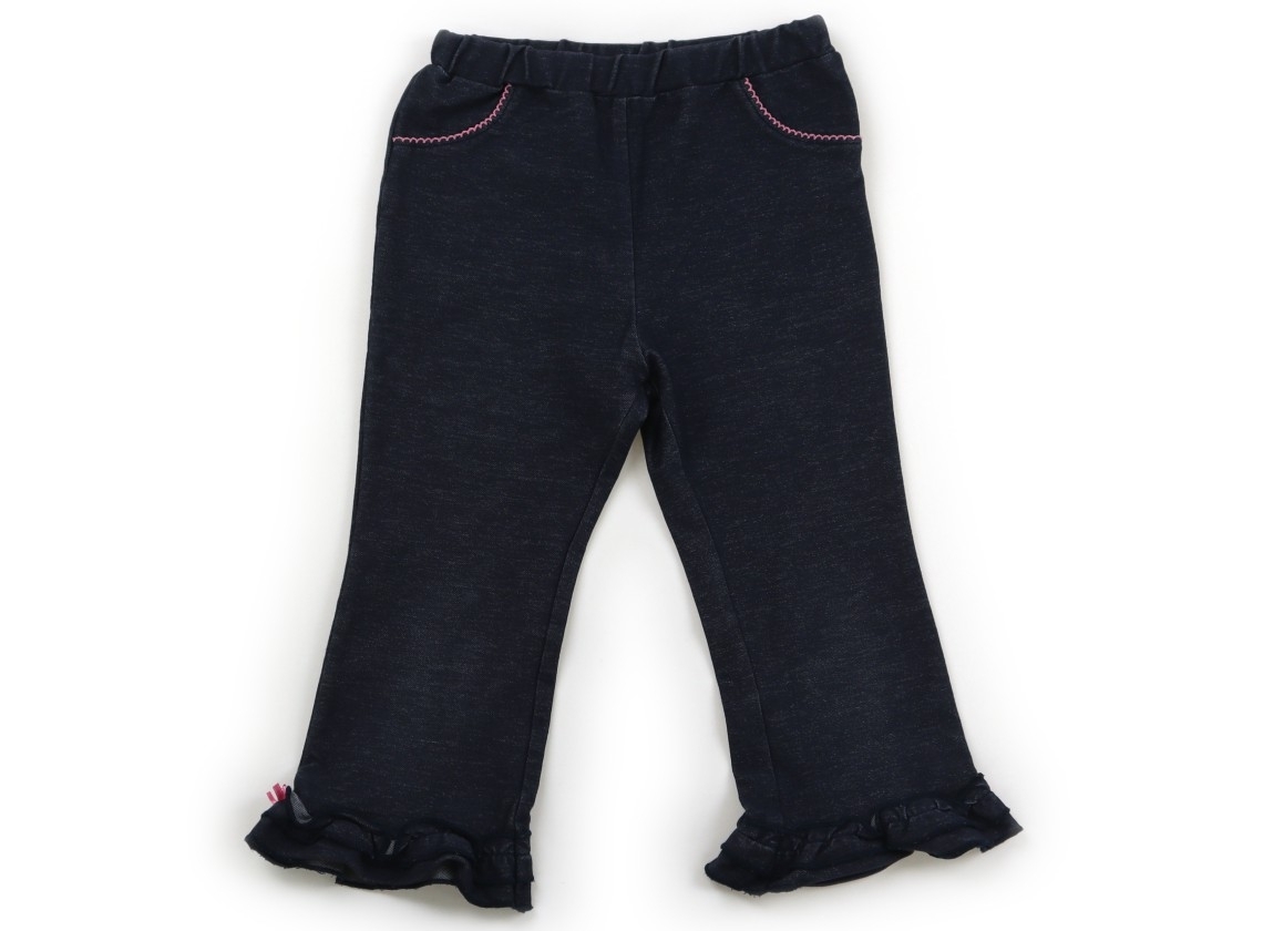 カットソーデニム。ウエストは総ゴム。色褪せ、引っ掛け傷がいくつかありますがまだお使いいただけそうです。