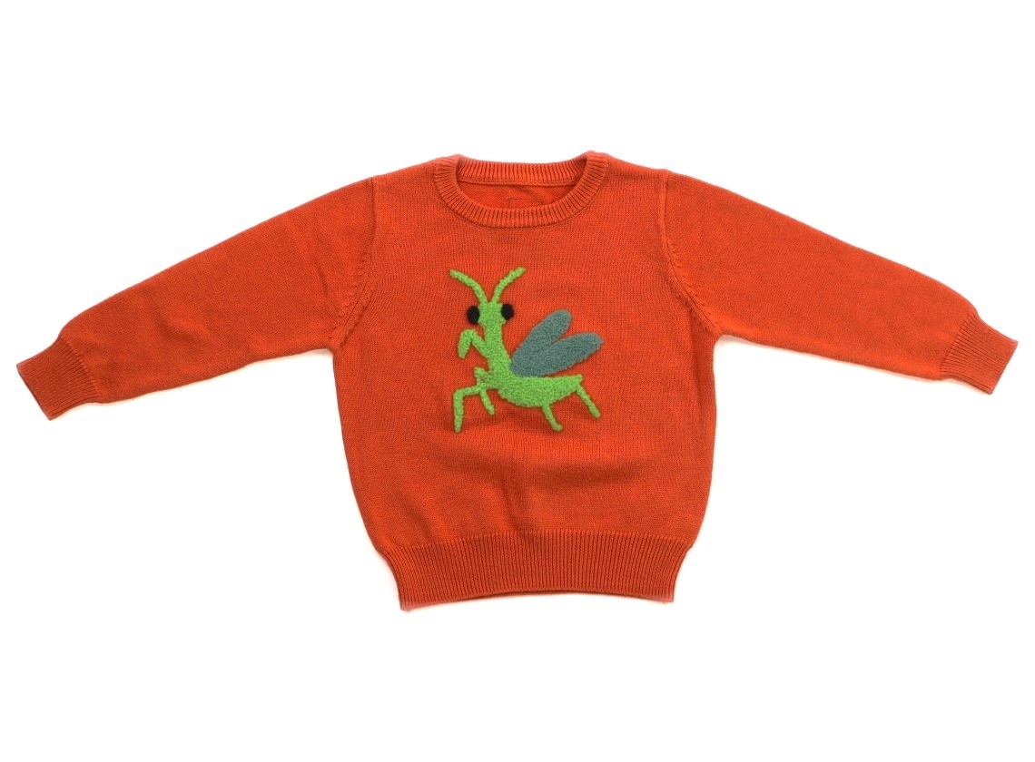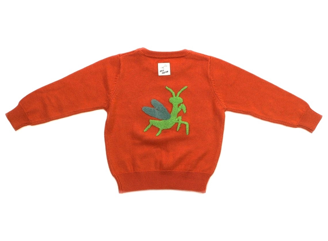 実際のサイズ表記はS80-90cm。やや薄手のアクリルコットンニットです。全体に毛玉、背面に毛羽立ちが見受けられます。
