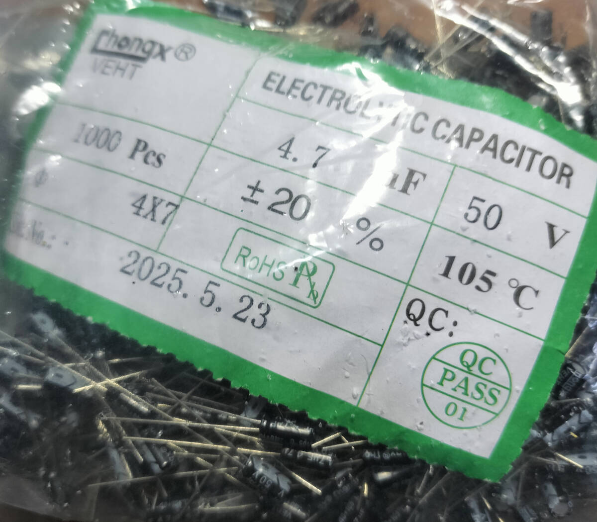 100個 50V 4.7μF 105℃ ±20% 4x7 電解コンデンサ