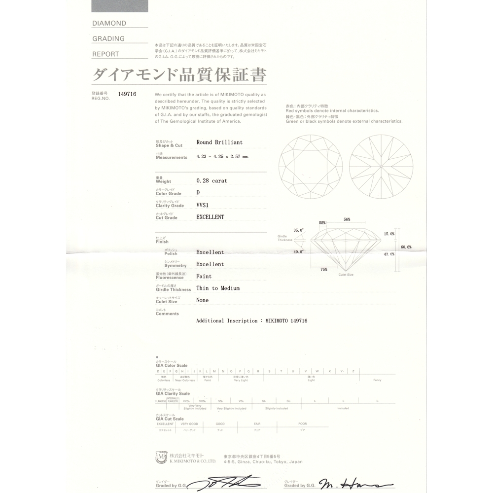 ダイヤモンドのガードルには、MIKIMOTO 149716の刻印がございます。