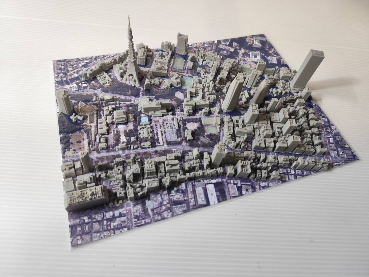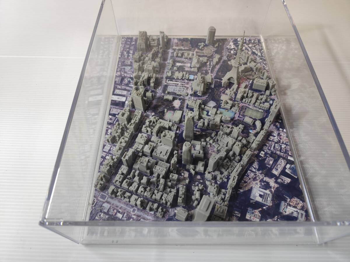 国土交通省の3D都市モデルの整備・活用を目指すProject PLATEAU(プロジェクトプラトー)の建築物データを変換して、高精度3Dプリンターを使い模型化しました。