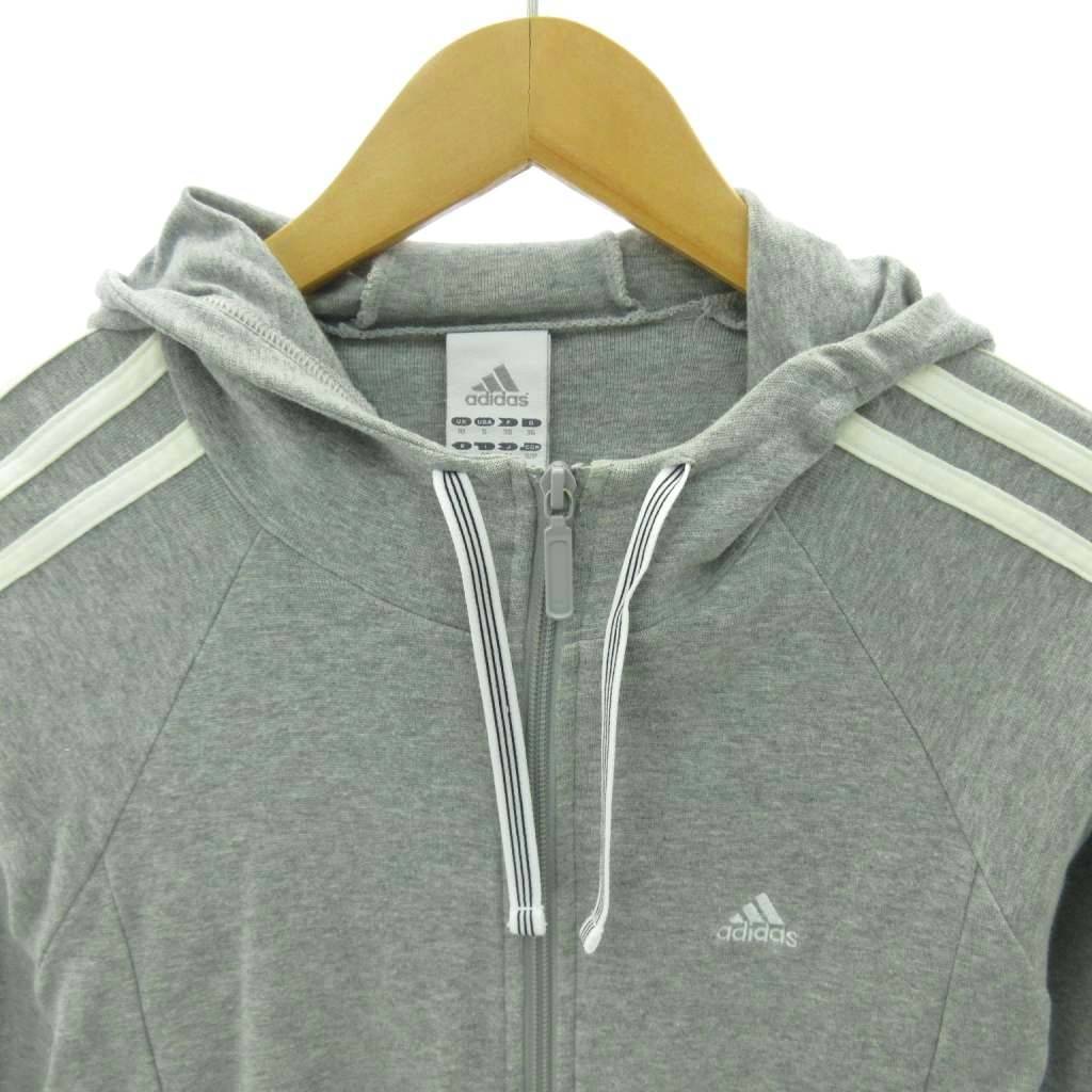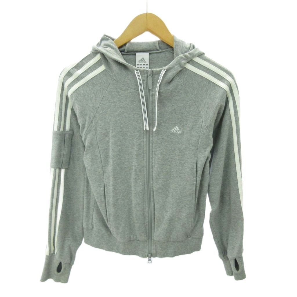アディダス adidas ジップアップ パーカー フーディ スリーストライプ 長袖 M グレー 0906 レディース