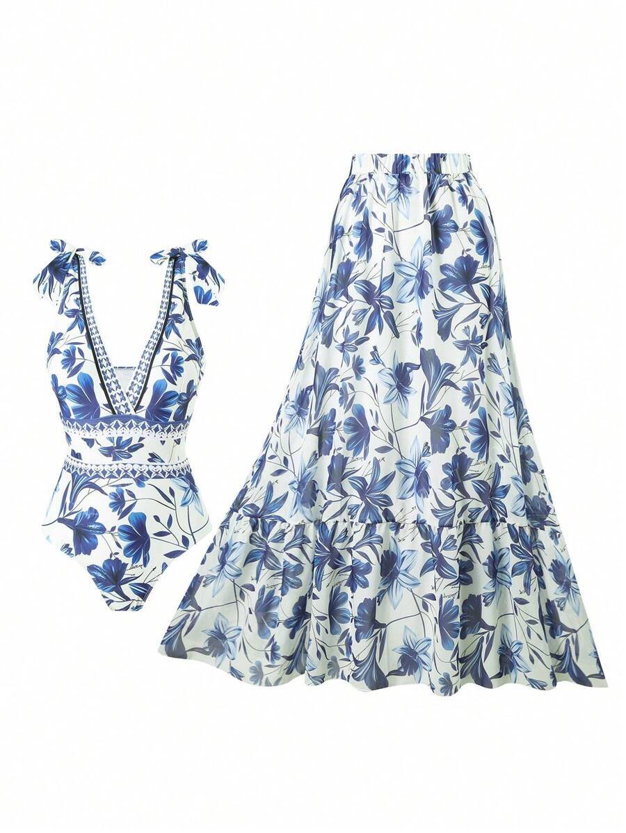 レディース 水着 ワンピース 2024年新作 ヨーロッパ・アメリカ風レディース ワンピース水着セット ロングスカート付き、ファッシ