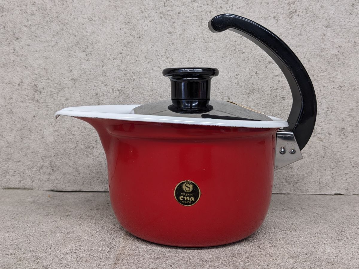 ii301■【デッドストック】MARUESU/マルエス QUALITY FIRST エナ・ポット・ポリー ホーロー ケトル やかん 0.6L 赤 レッド/60