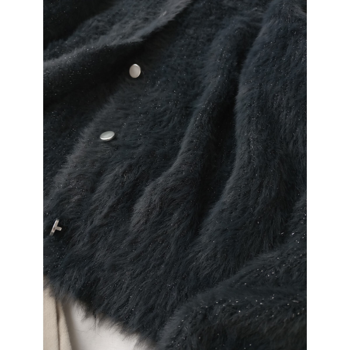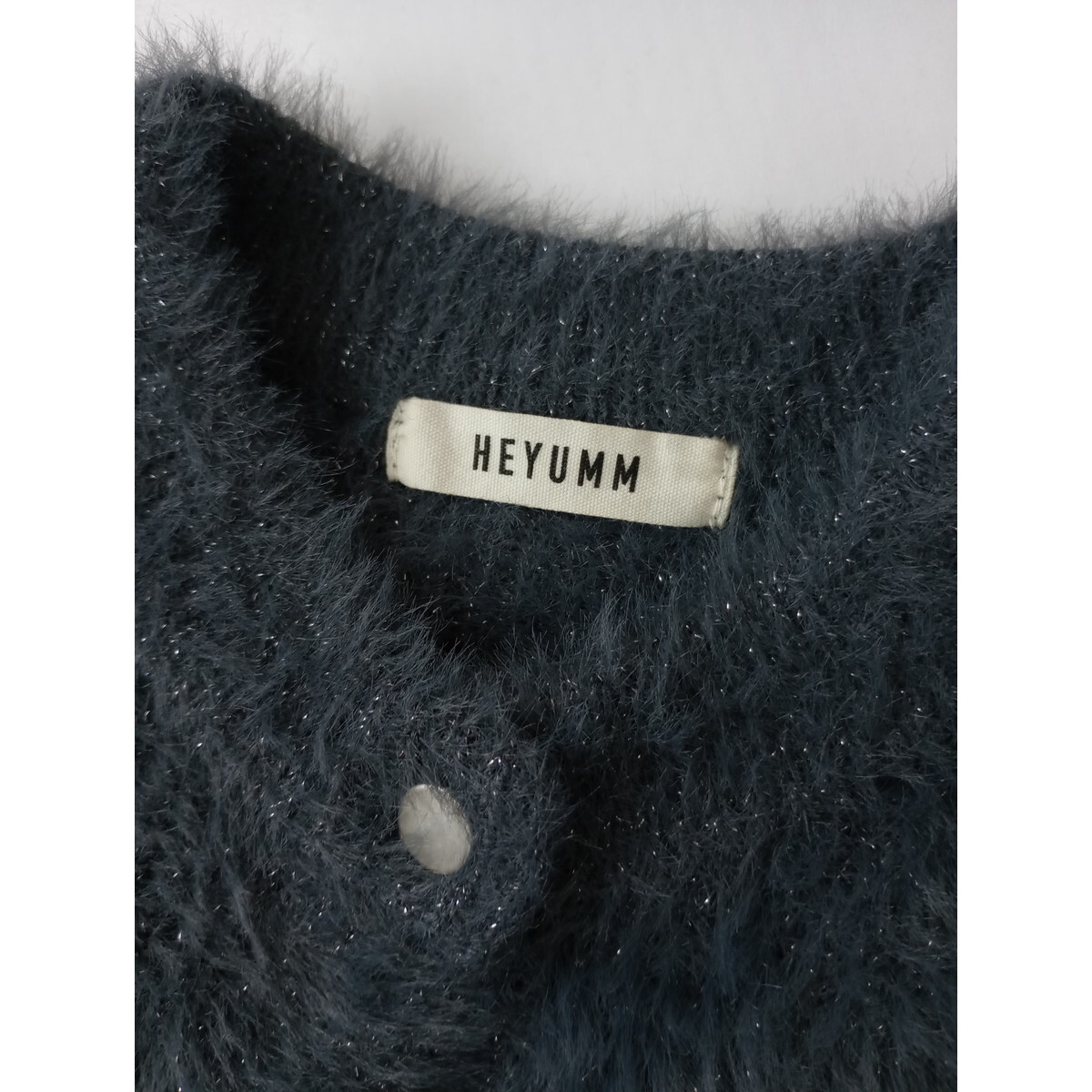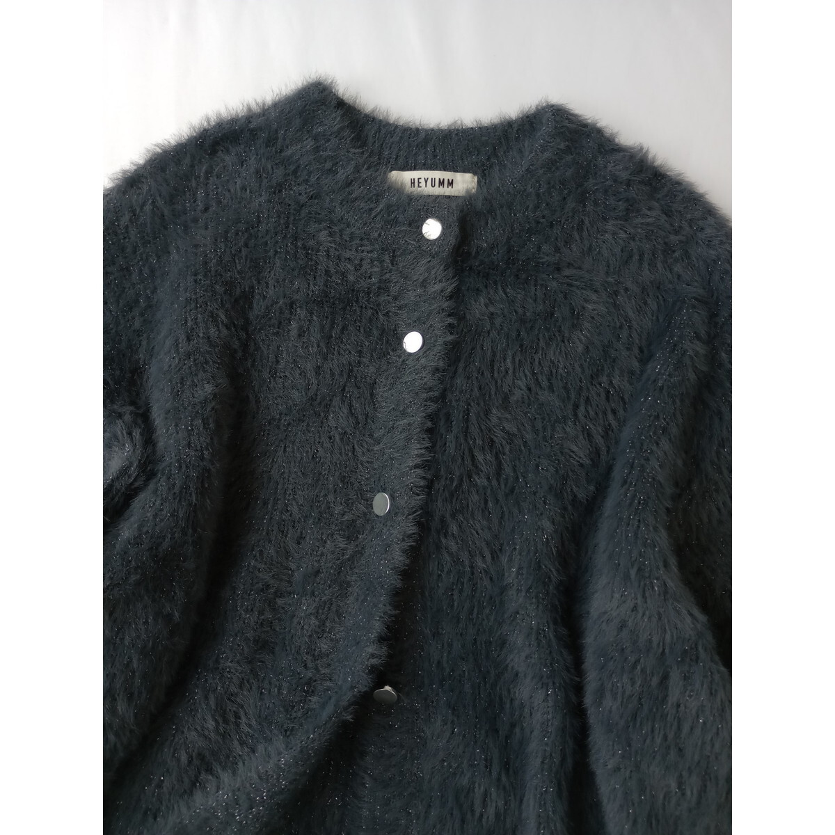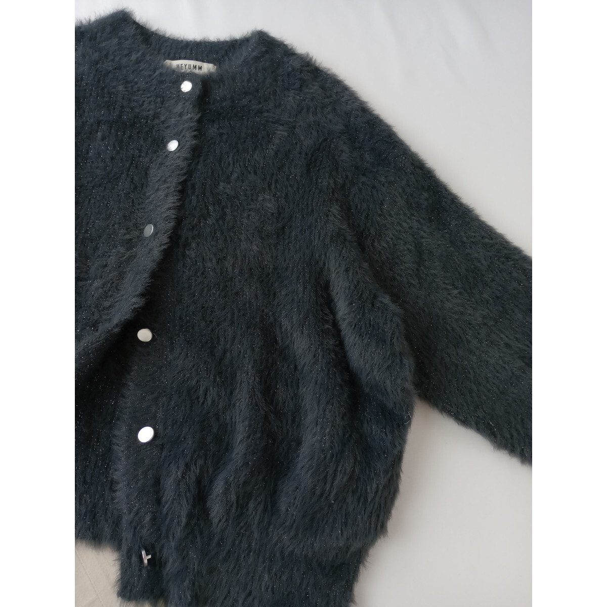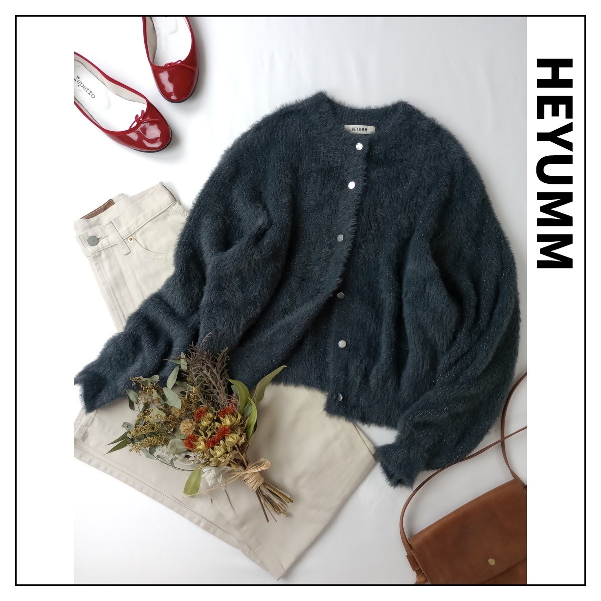 HEYUMM ヘユム「見てうっとり、着てうっとり♪」クルーネック ラメ フェザー ニット カーディガン 長袖 Free ブルーグレー(5M+5183)