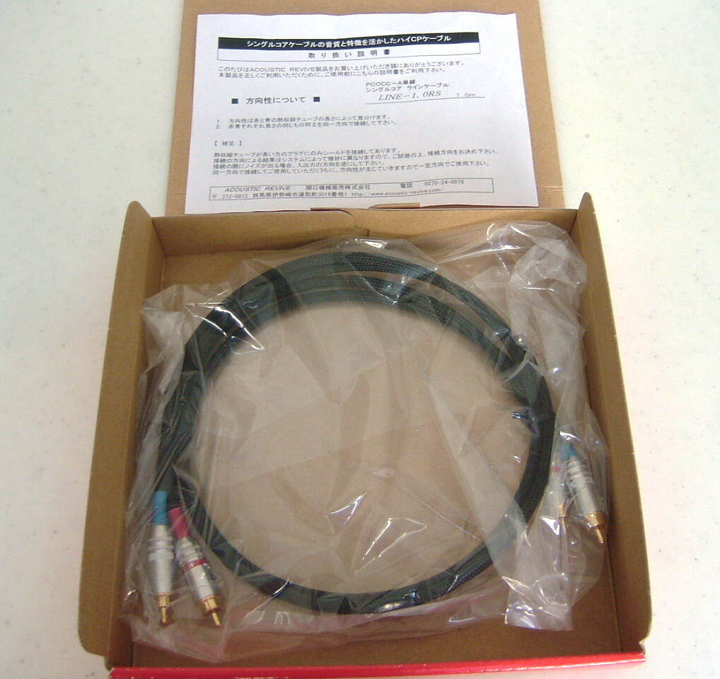 新品 元箱入 貴重 Acoustic Revive 単線導体 PCOCC-A LINE-1.0RS 1.0m RCAケーブル 銅箔シールド 天然絹 カーボンSF 航空アルミ制振プラグ