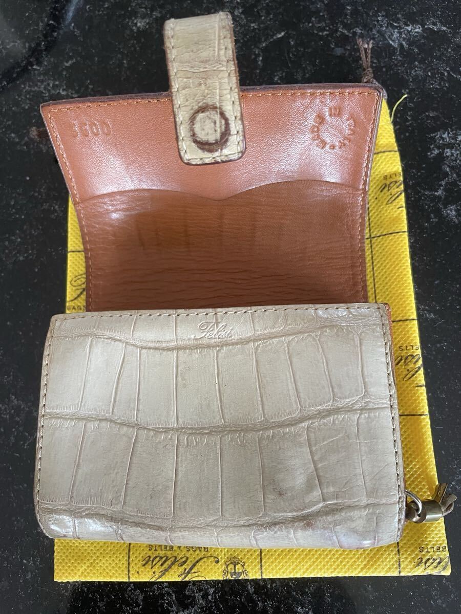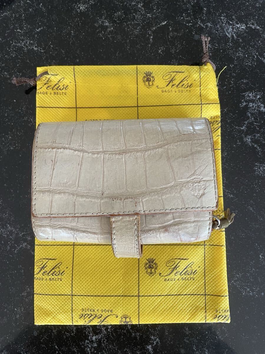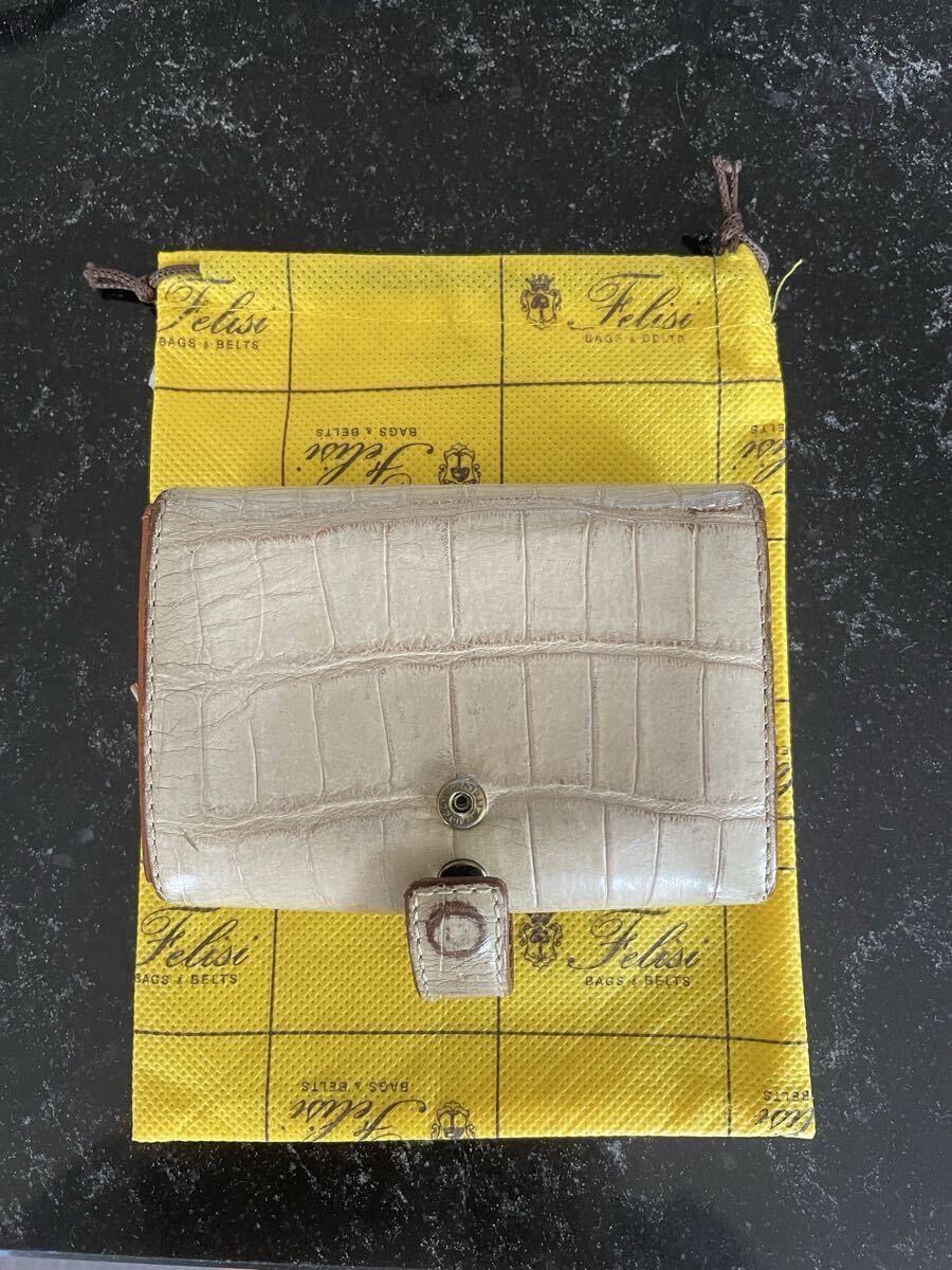 フェリージ コロコロ ベージュクロコ型押し 財布 中古品