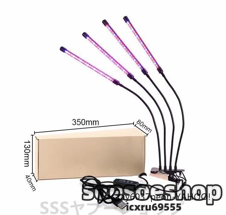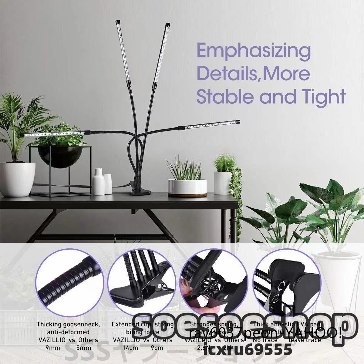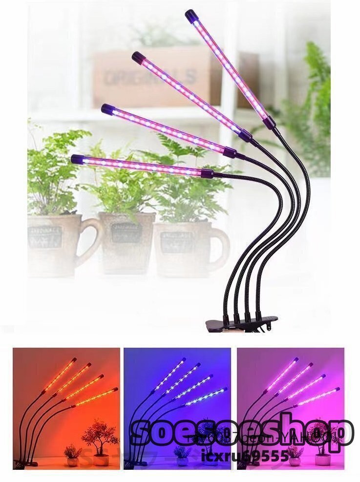 商品説明★状態:新品未使用★植物ライト 4ヘッド ※本商品につきましては、USBのACアダプターは付属しておりません。【高輝度&4本設計】40W高輝度LED光源 赤28個、イエロー28個と青24個の組み合わせて光合成を促進し野菜や観賞用植物を元気に育てます。曇りや日当たりが足