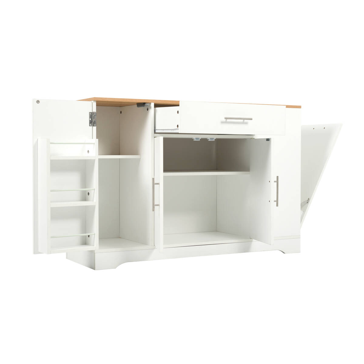 • 【ごみ箱収納キャビネット 】生ごみの嫌な臭いも、ごみ箱の見た目の雑然も、すべてこのキャビネットに隠せます。傾斜ドアがごみの出し入れをラクにし、ペットがいたずらする心配もないので、安心です。