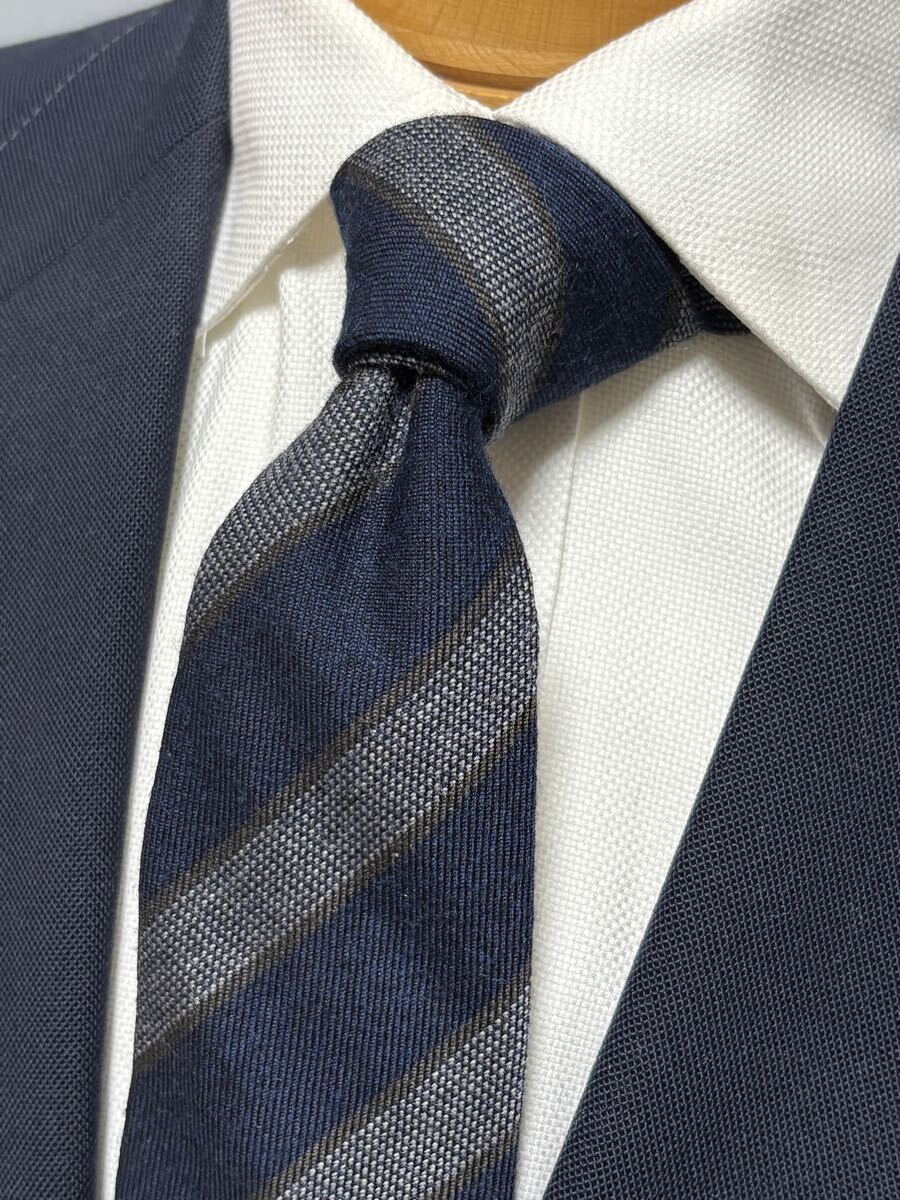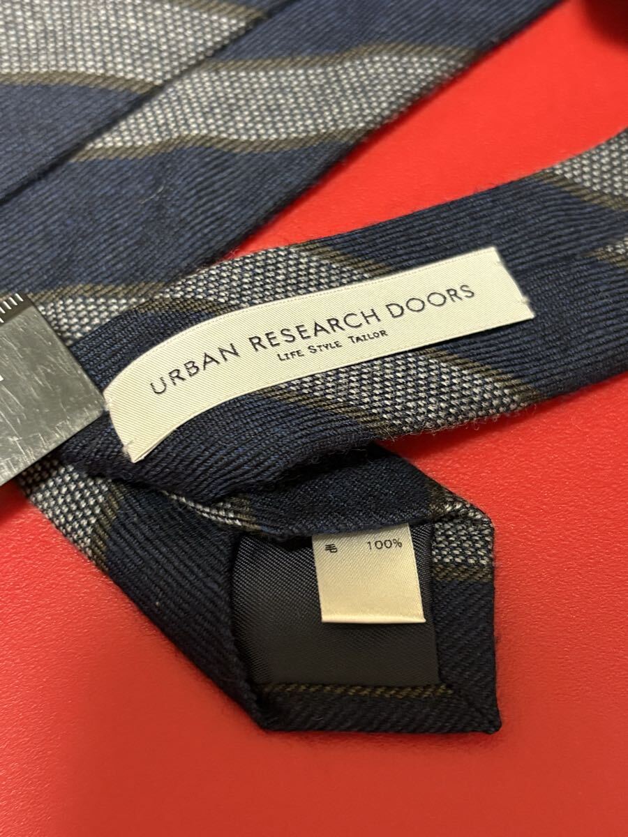 【美品】アーバンリサーチ ウールタイストライプ ネイビー基調大剣約7.5cm 日本製