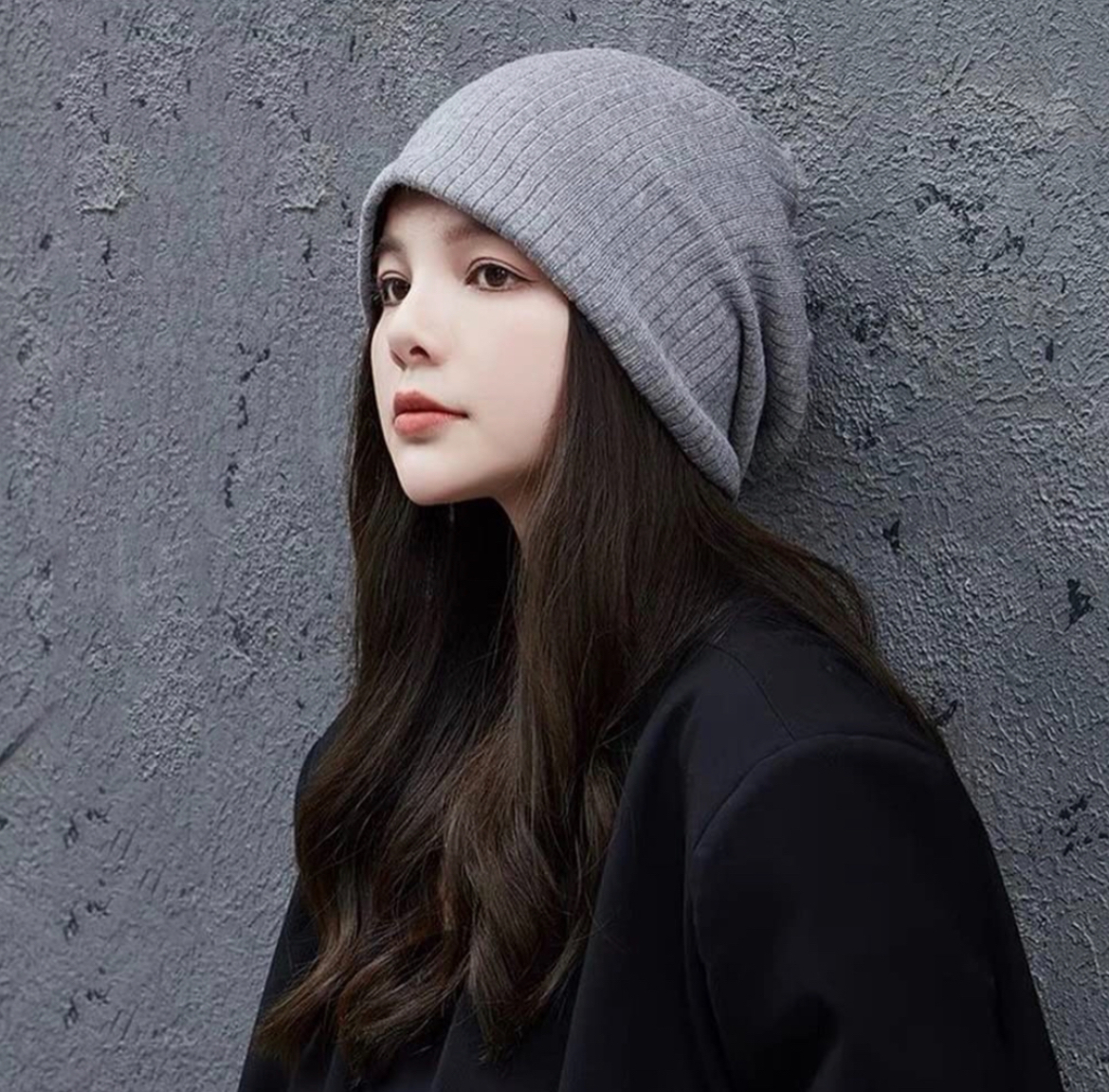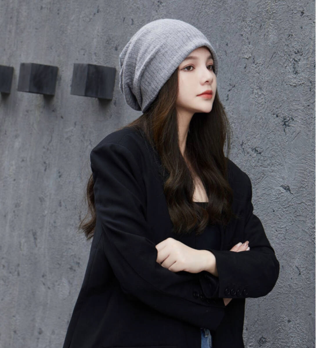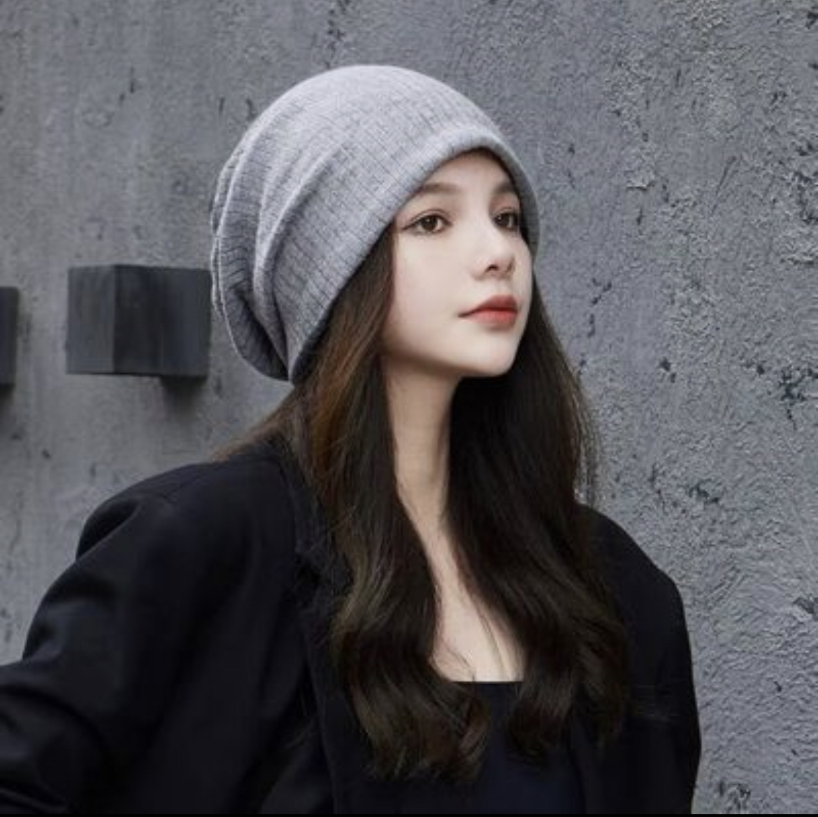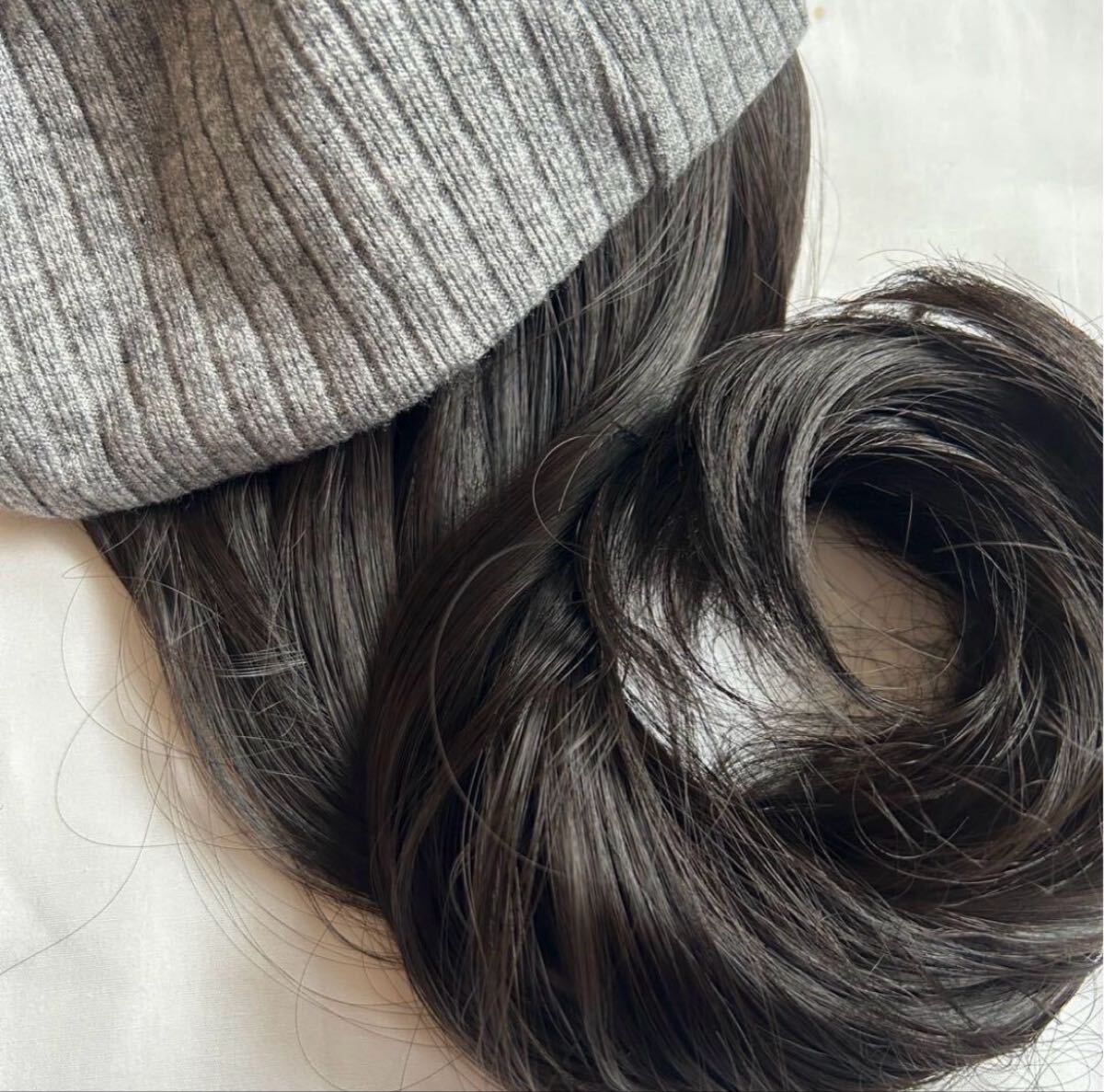 【新品!未使用!】グレーニット帽付きウィッグ ナチュラルブラウン かつら ロング レディース
