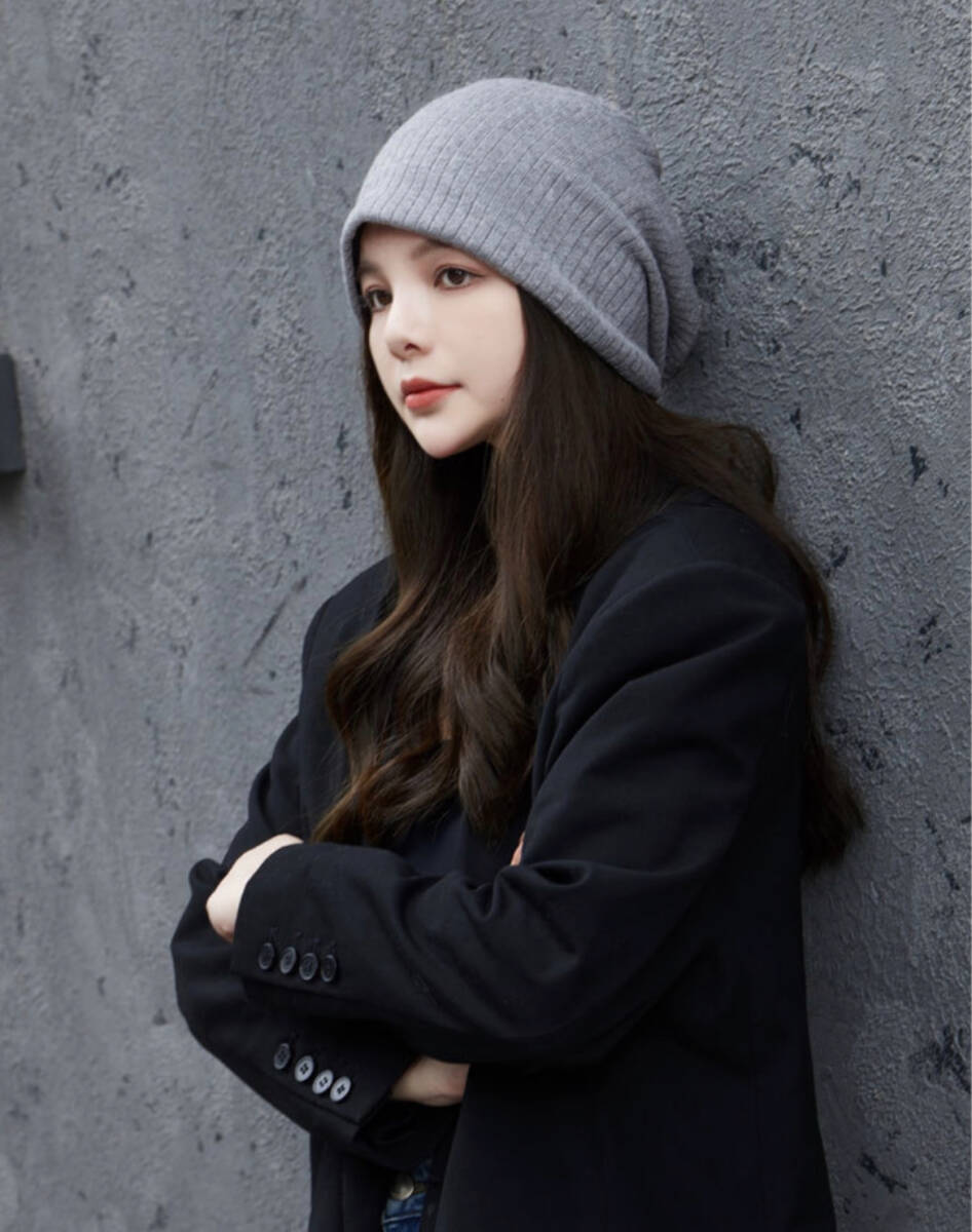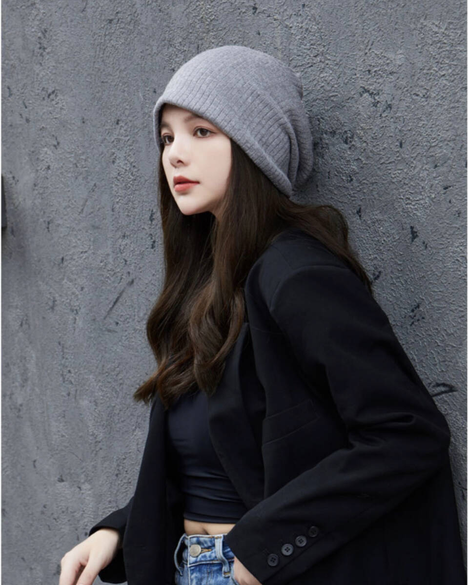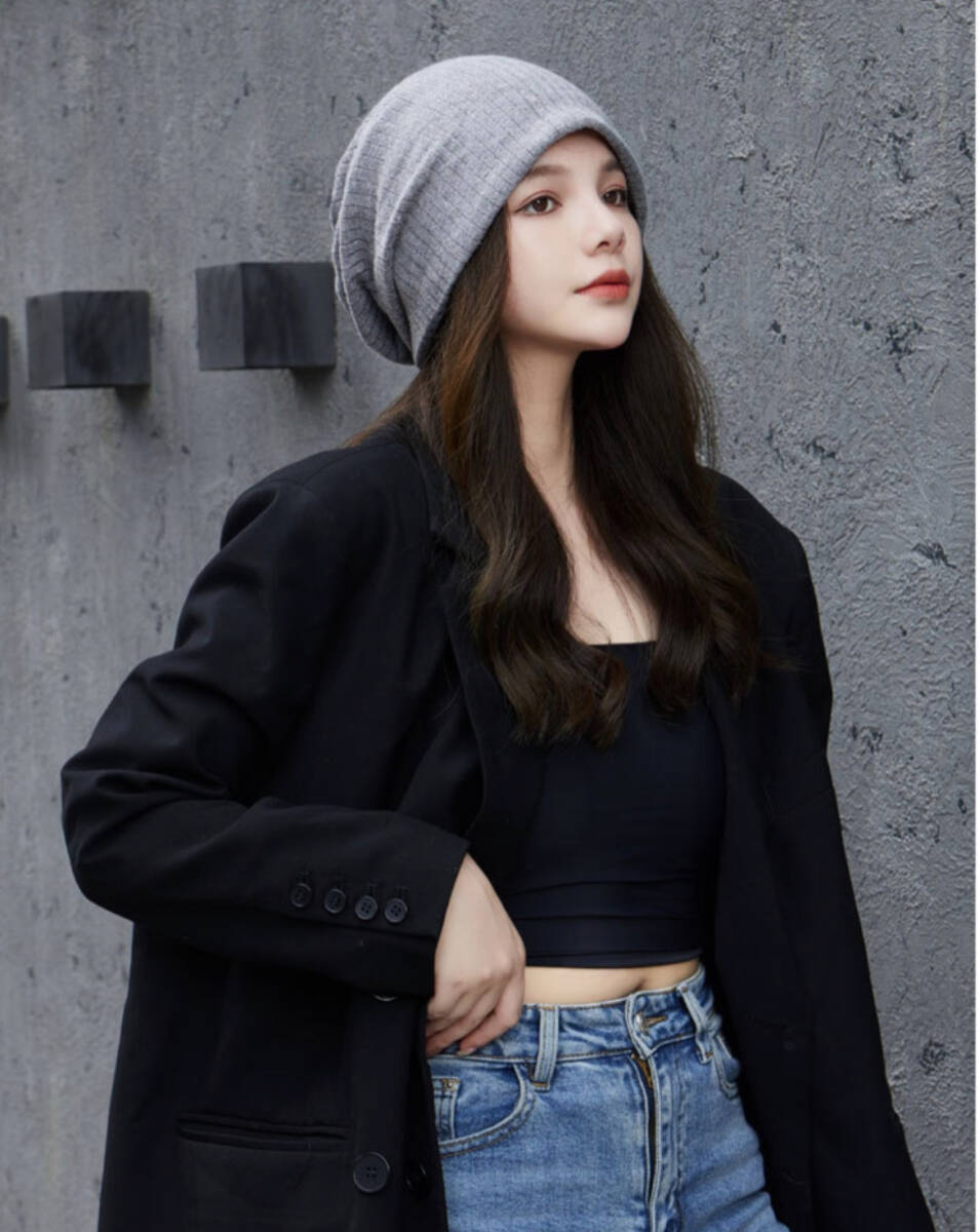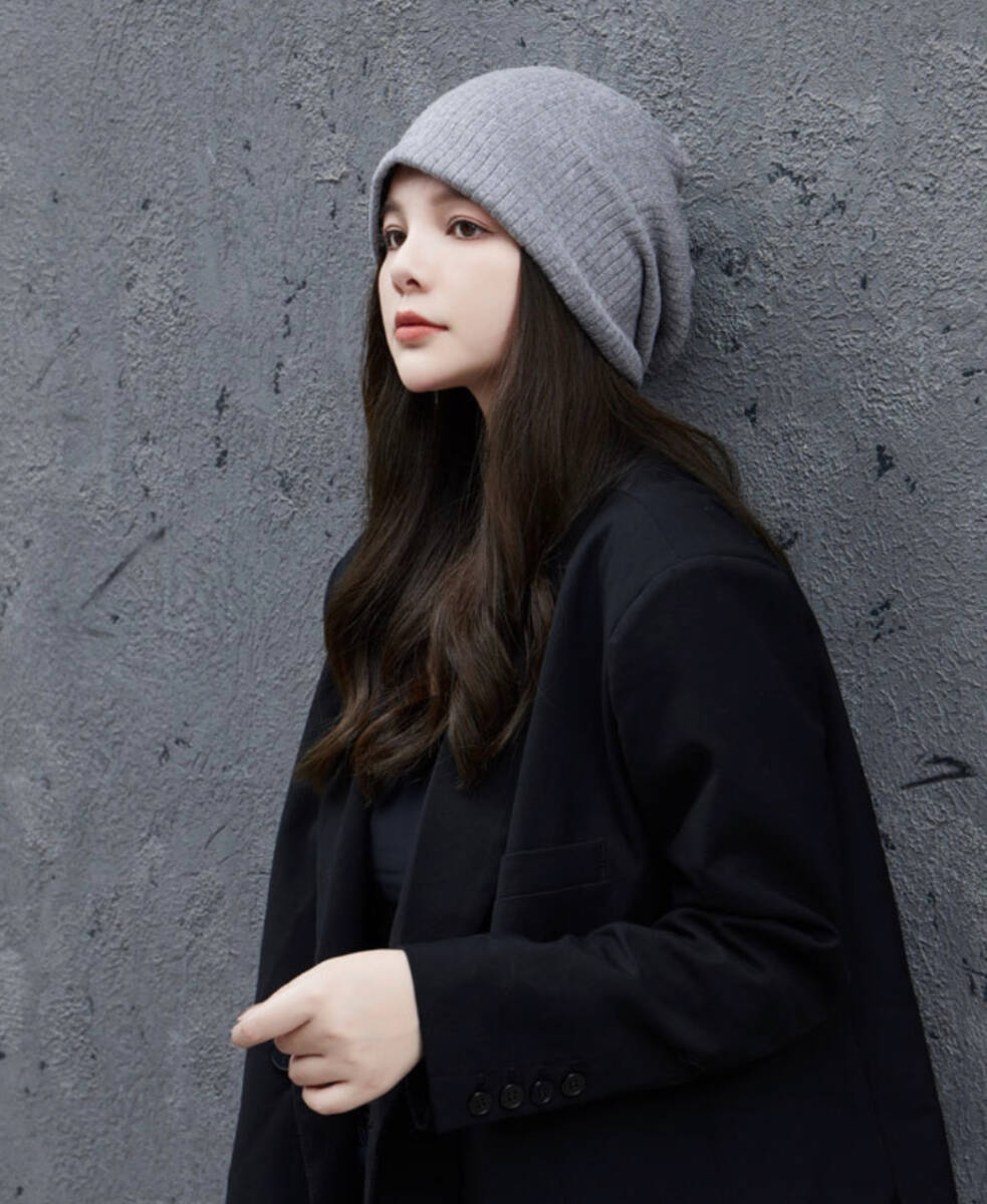 【新品!未使用!】グレーニット帽付きウィッグ ナチュラルブラウン かつら ロング レディース