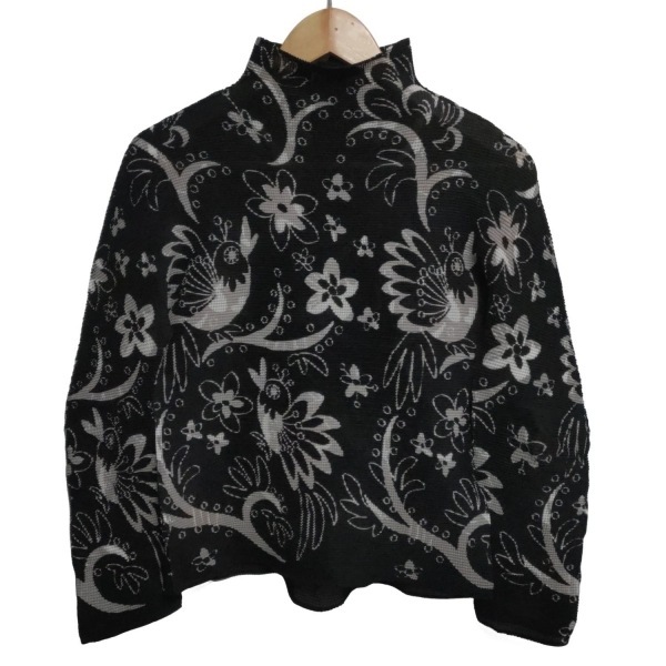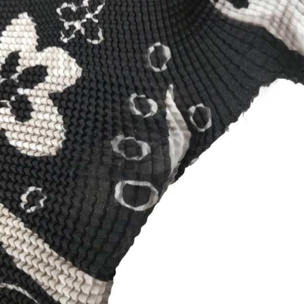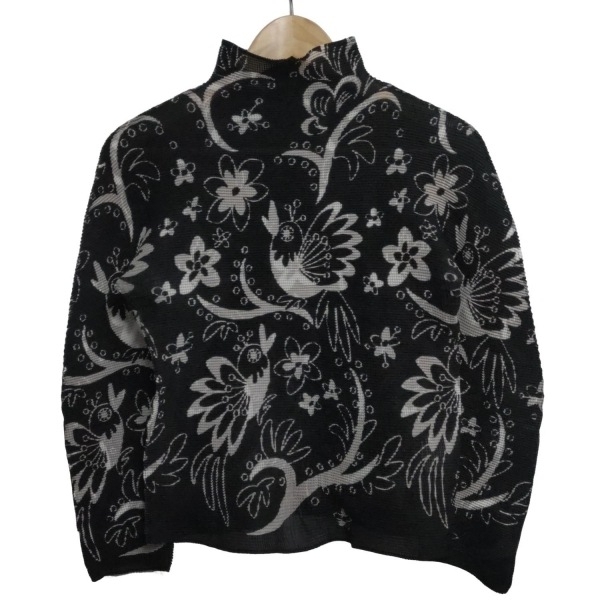ミー/イッセイミヤケ me ISSEY MIYAKE 長袖カットソー - 黒×グレーベージュ×白 レディース ハイネック/ギャザー/花柄/鳥 トップス
