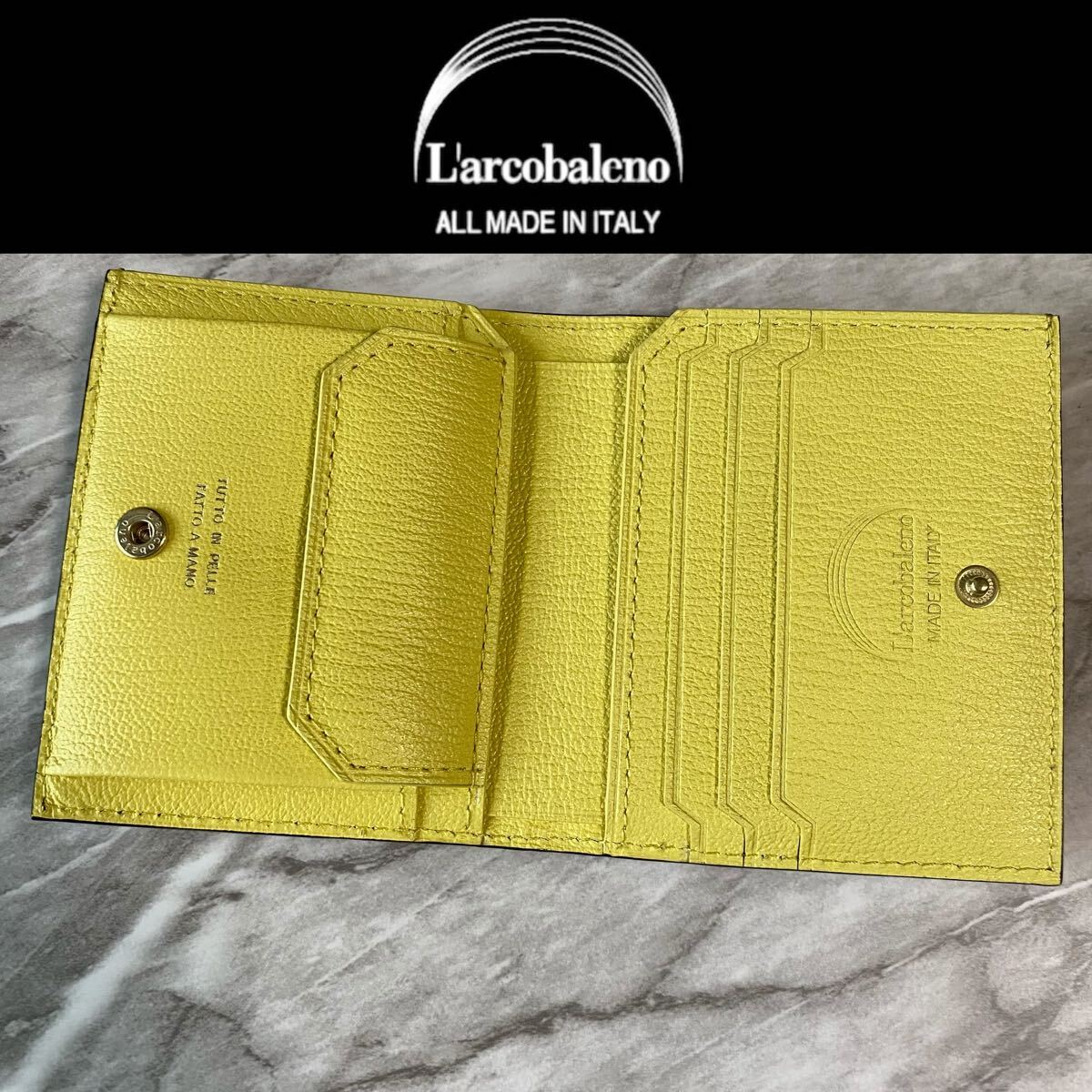 2423【新品 3.5万円】ラルコバレーノ★スナップタイプ二つ折りミニウォレット★GRAY*YELLOW★人気カラー★シンプルなデザインで使いやすい