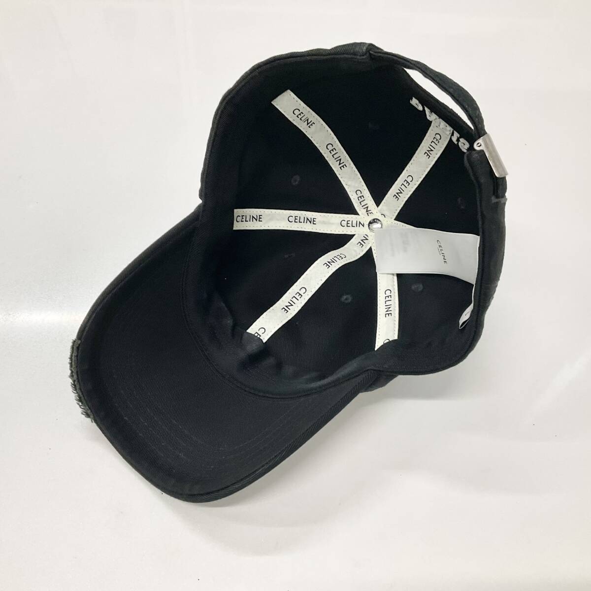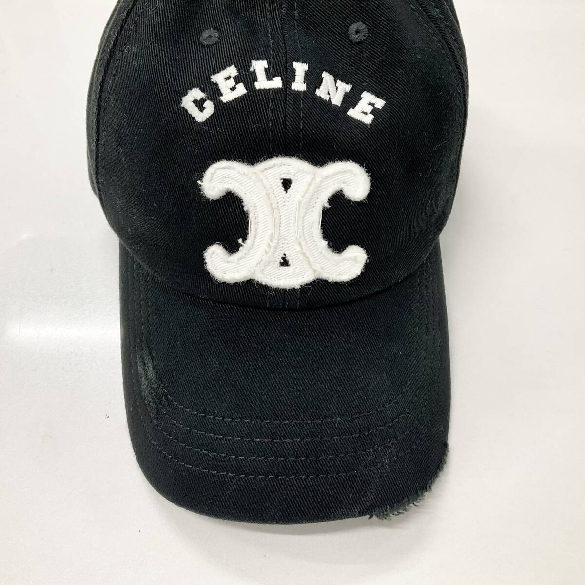 M12942 セリーヌ トリオンフ ロゴ コットン ベースボールキャップ ダメージ加工 帽子 ブラック