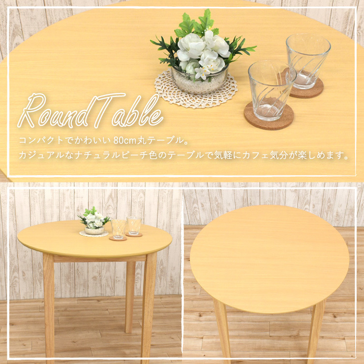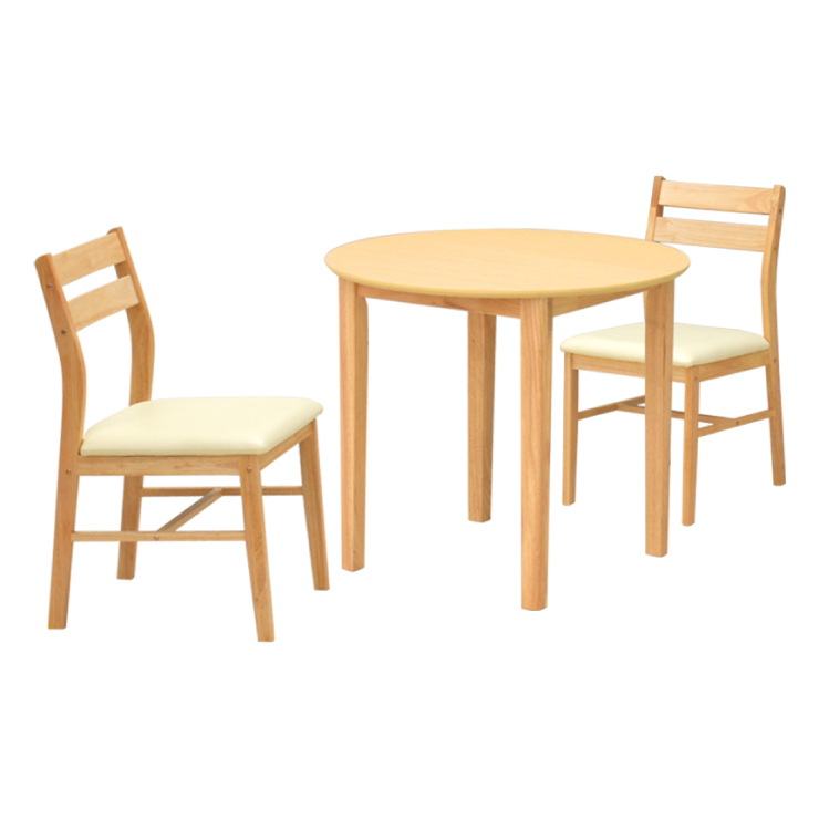 ダイニング丸テーブル 3点セット 幅80cm ナチュラルビーチ色 2人掛け mac80-3-sesiru360nbh メラミン化粧板 イス2脚 PVC 5s-2k-179/153 iy