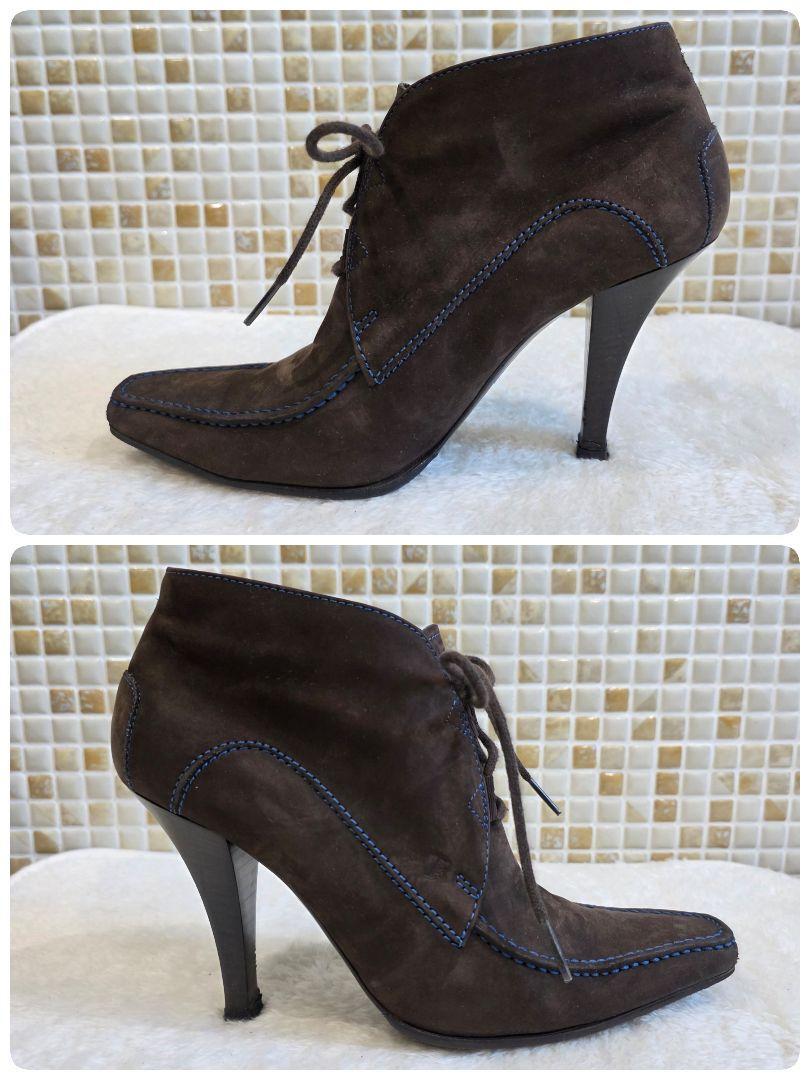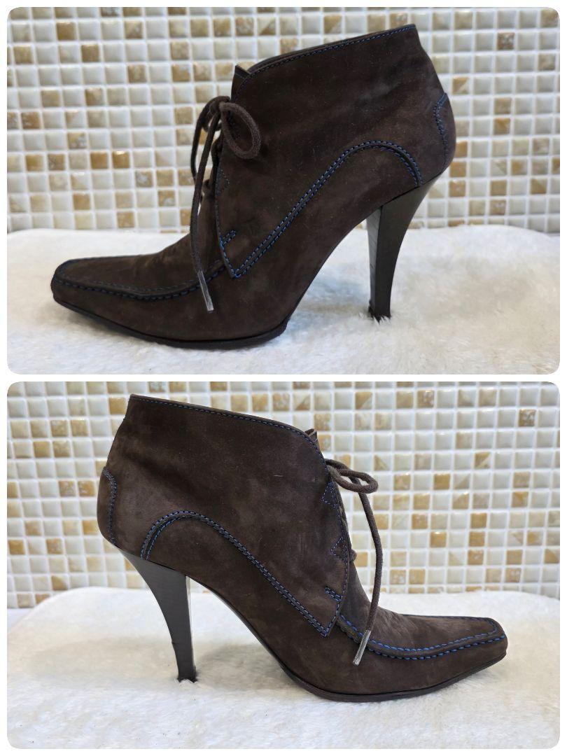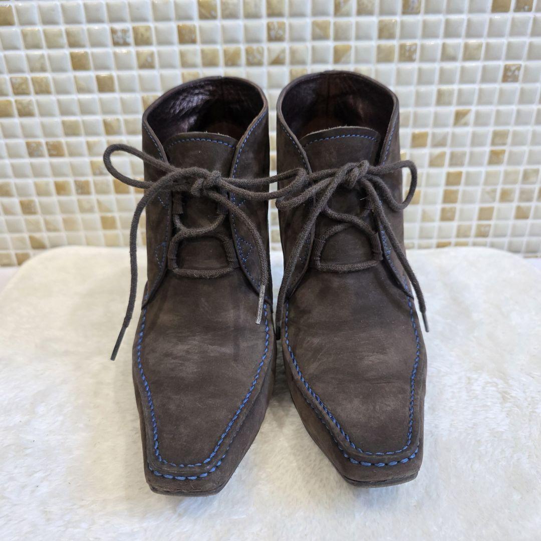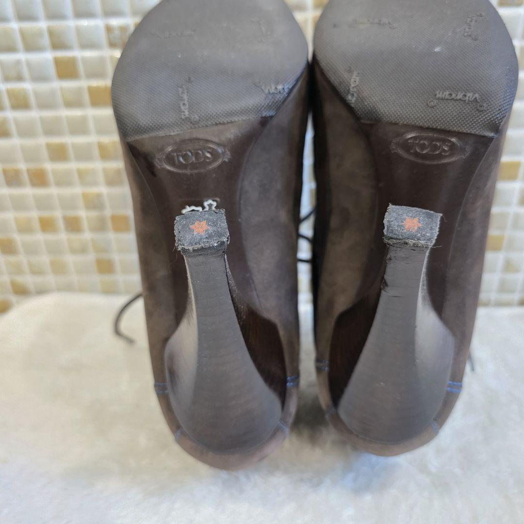 上質なブラウンスエードにブルーステッチが映える、TOD'Sのレースアップブーティ。スクエアトゥとすっきりとしたシルエットで、モード感と上品さを兼ね備えたデザインです。