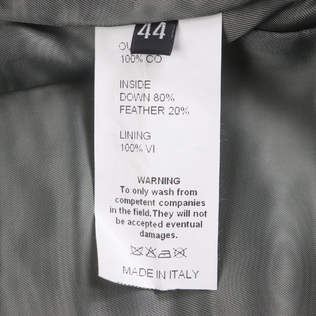 | 素材 (material) | 表地:コットン100% 中綿:ダウン80% :フェザー20% 裏地:ビスコース(レーヨン)100% | ||||||||||||||||