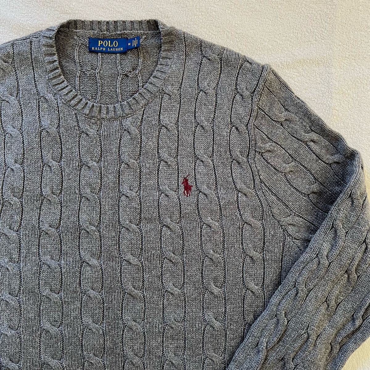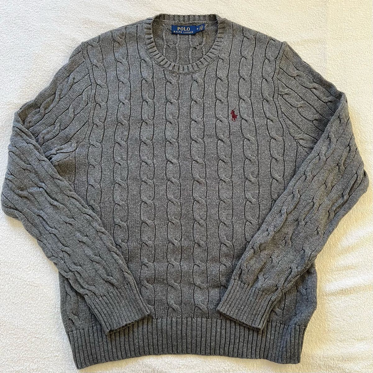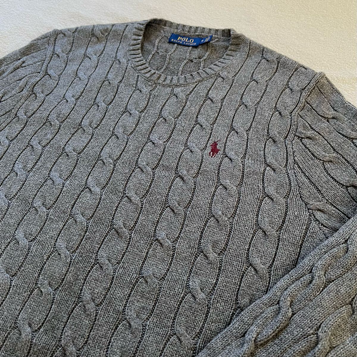 定番ブランドRalph Lauren ケーブル編みニットです。落ち着いたグレーカラーのセーターは大人の方にもおすすめの一枚となります。