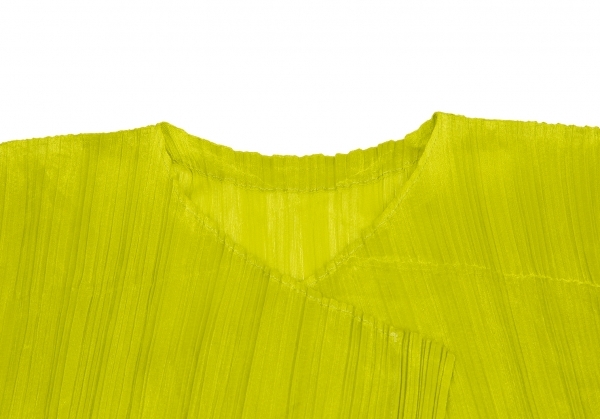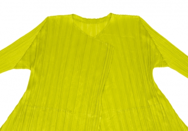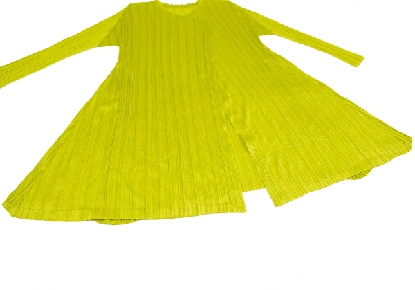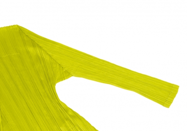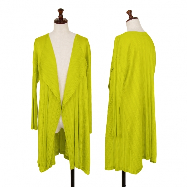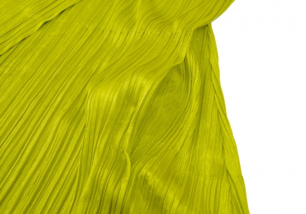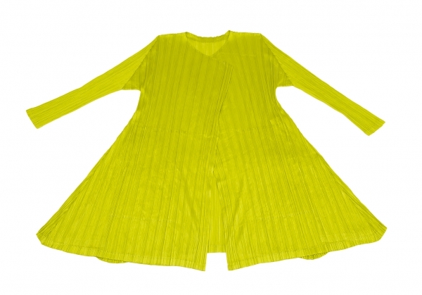 | プリーツプリーズPLEATS PLEASE シャイニープリーツボタンレスロングカーディガン 黄緑2 |