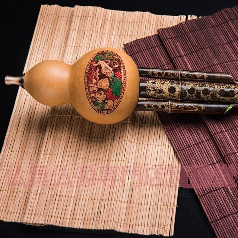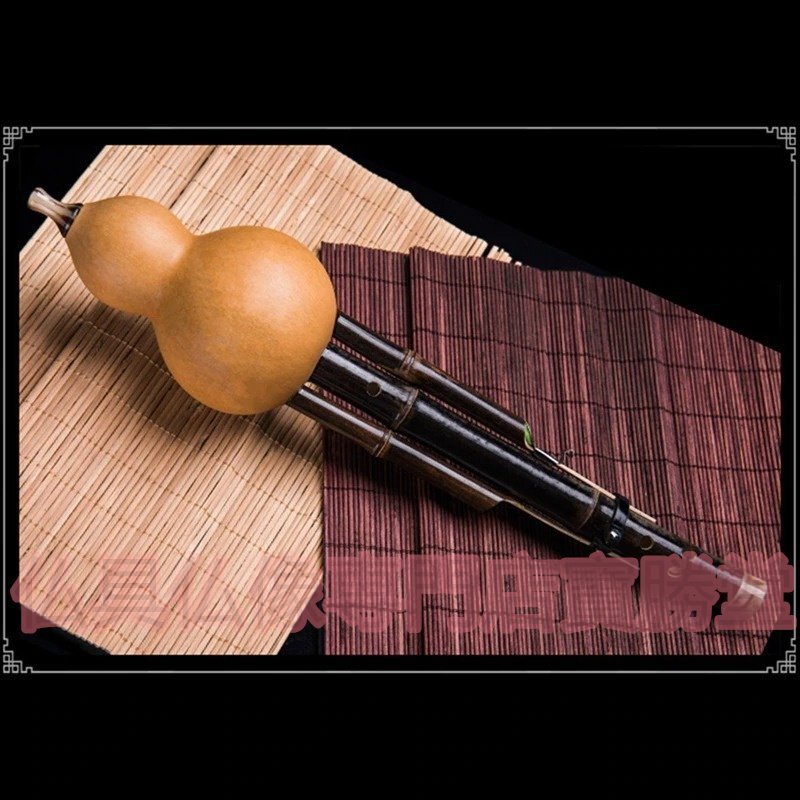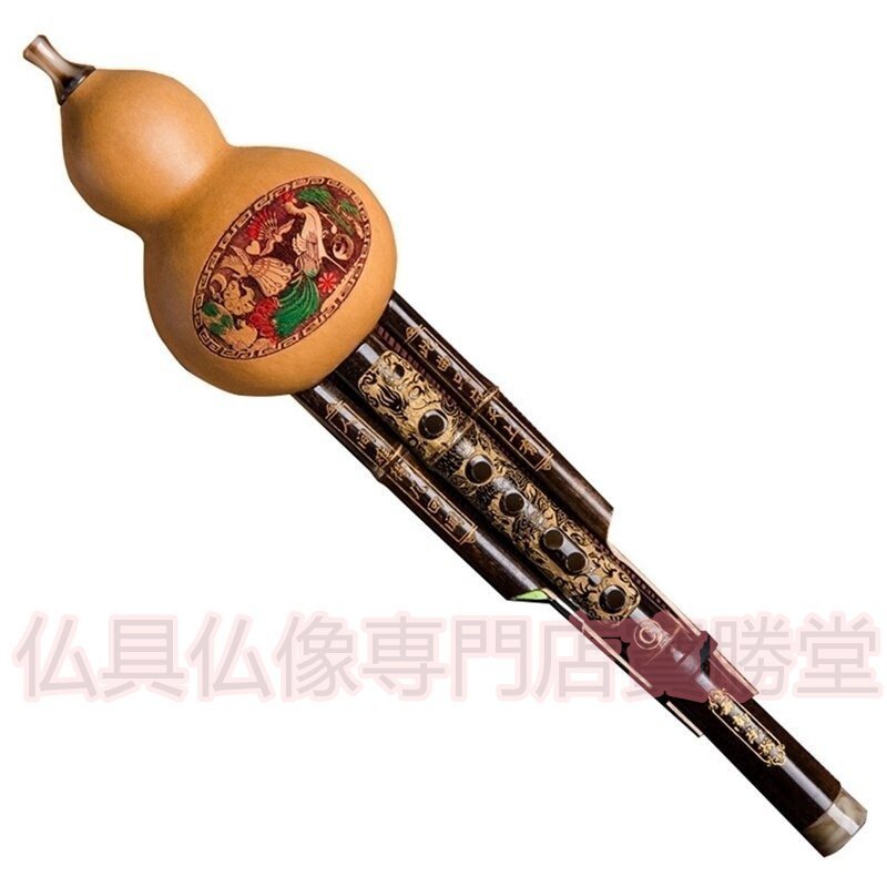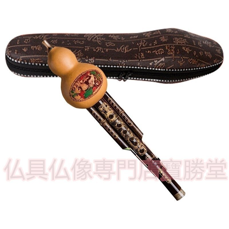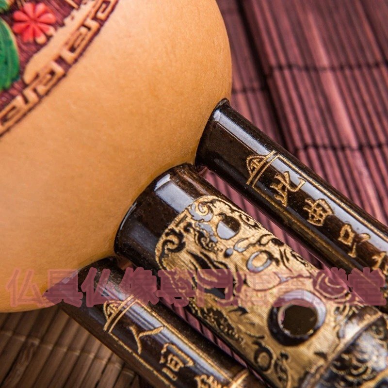 【寶勝堂】エスニックな楽器●黒竹 ひょうたん フルート ケース付 音楽 民族楽器 演奏 笛 ふえ アジア 趣味 木管楽器 コレクション インテ